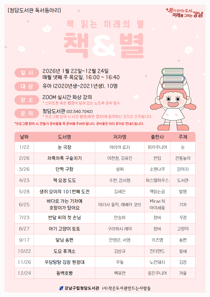 행사명 청담 [유아 독서동아리 추가 모집] 책&별(책 읽는 미래의 별)