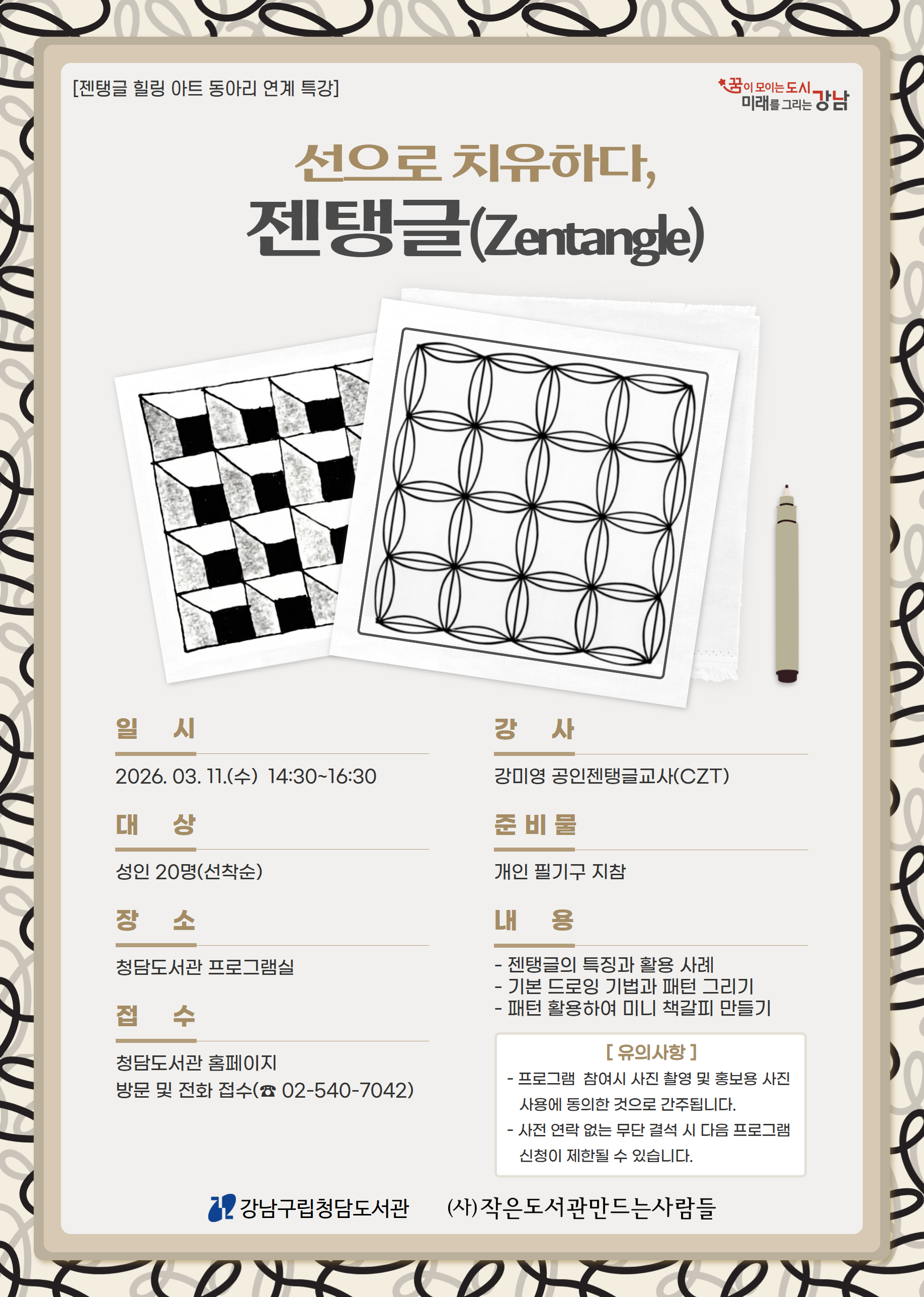 선으로 치유하다, 젠탱글(Zentangle) 특강 안내