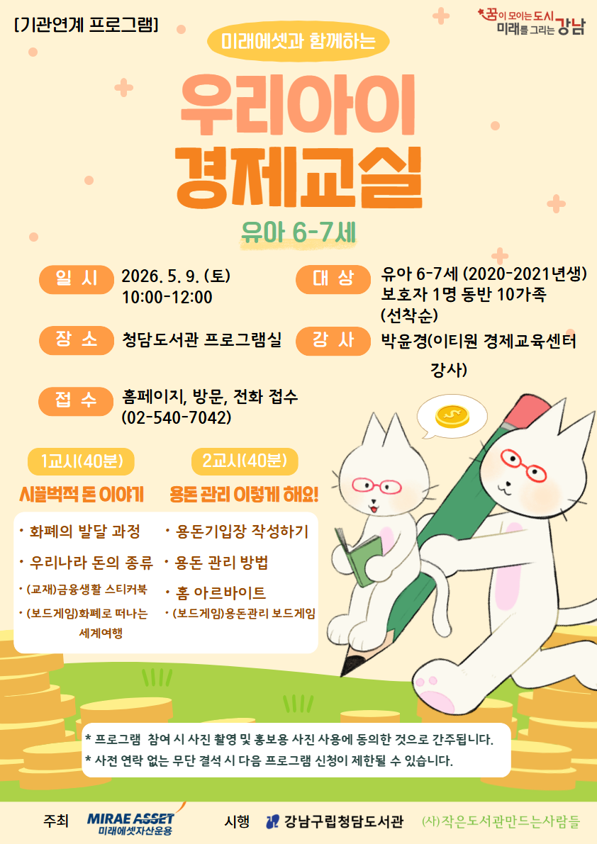 | 행사명 | 청담 [기관연계] 미래에셋과 함께하는 우리아이 경제교실(유아 6~7세) |