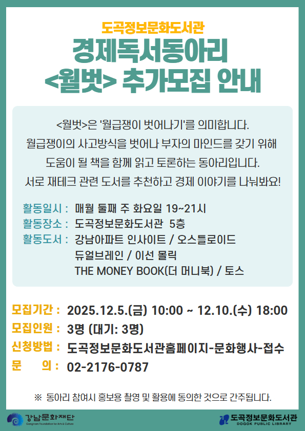 독서동아리 <월벗> 추가모집