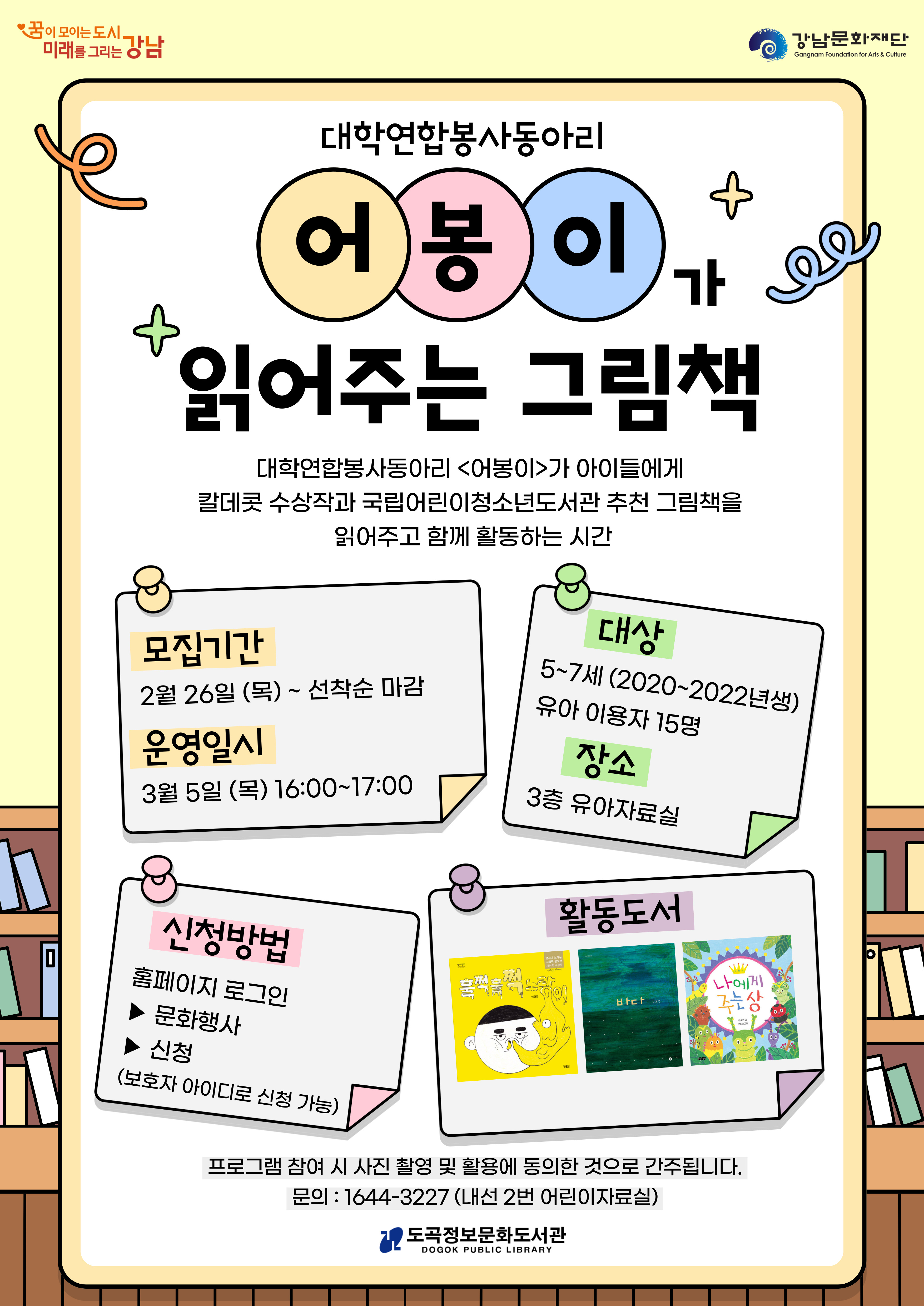 | 행사명 | 도곡정보 2026 도곡정보문화도서관 대학연합봉사동아리 <어봉이> 재능기부 프로그램 (3월 1주차) |