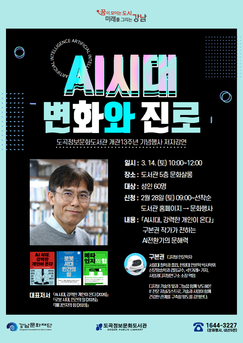 [개관13주년 기념행사] 구본권 저자강연 <AI시대 변화와 진로>