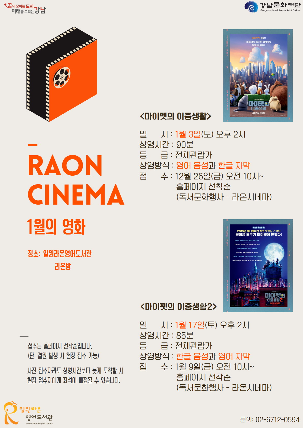 일원라온영어도서관 1월 라온시네마 영화 상영 안내입니다.