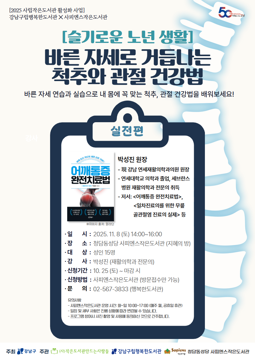 [2025 사립작은도서관 활성화 사업][슬기로운 노년 생활] 바른 자세로 거듭나는 척추와 관절 건강법