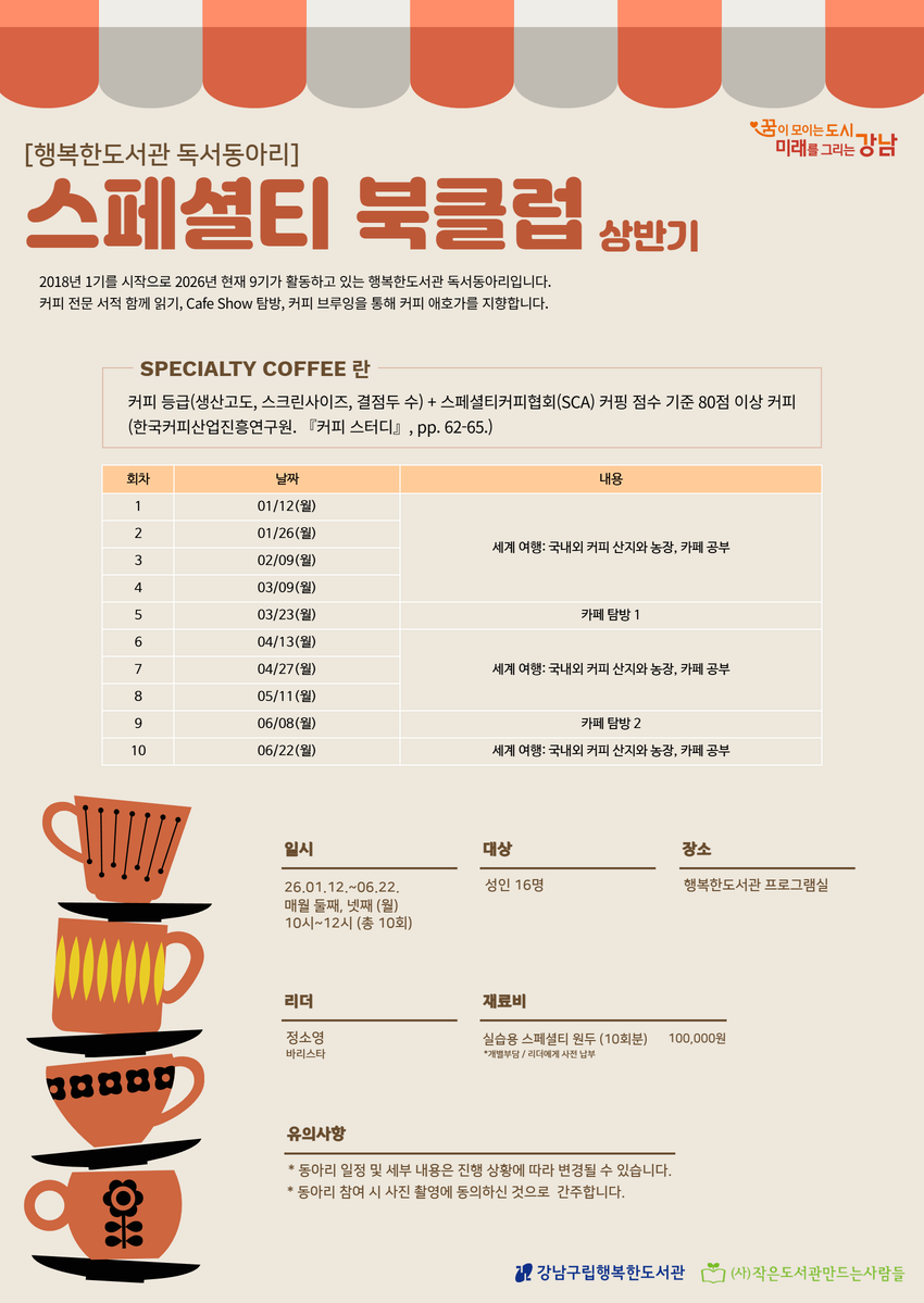 | 행사명 | 행복한 [동아리] 스페셜티 북클럽(2026년 상반기) |