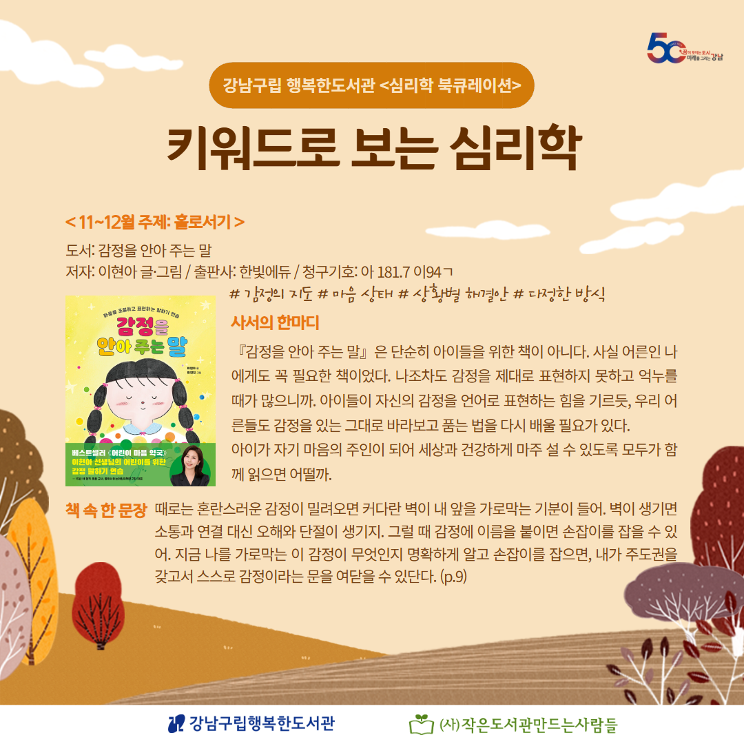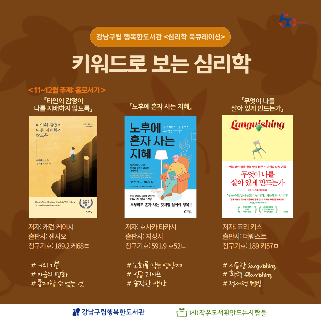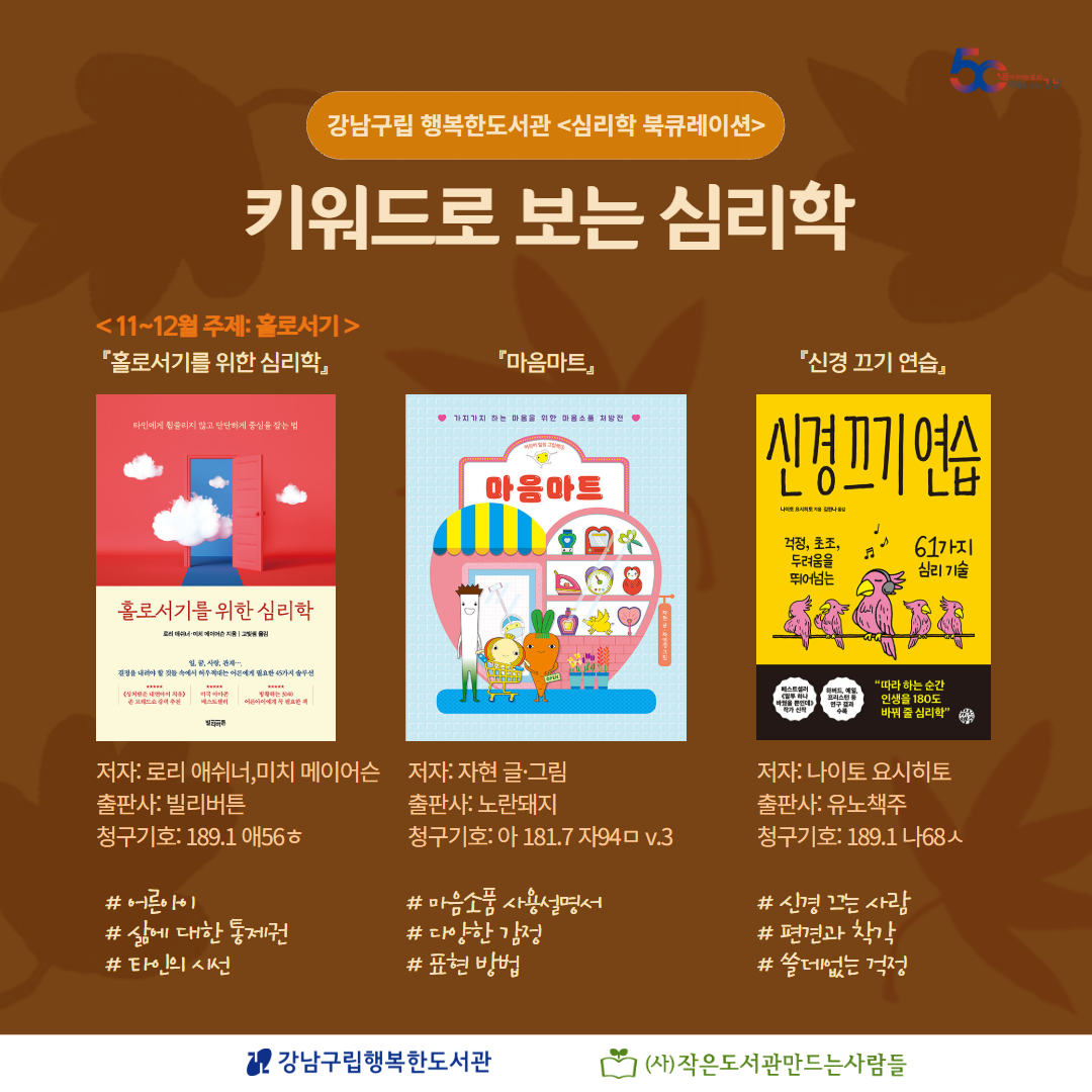심리학 북큐레이션 <키워드로 보는 심리학> 2025년 11~12월 주제는 '홀로서기'입니다.