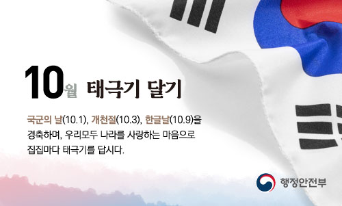 10월 국경일 나라사랑 태극기 달기 운동