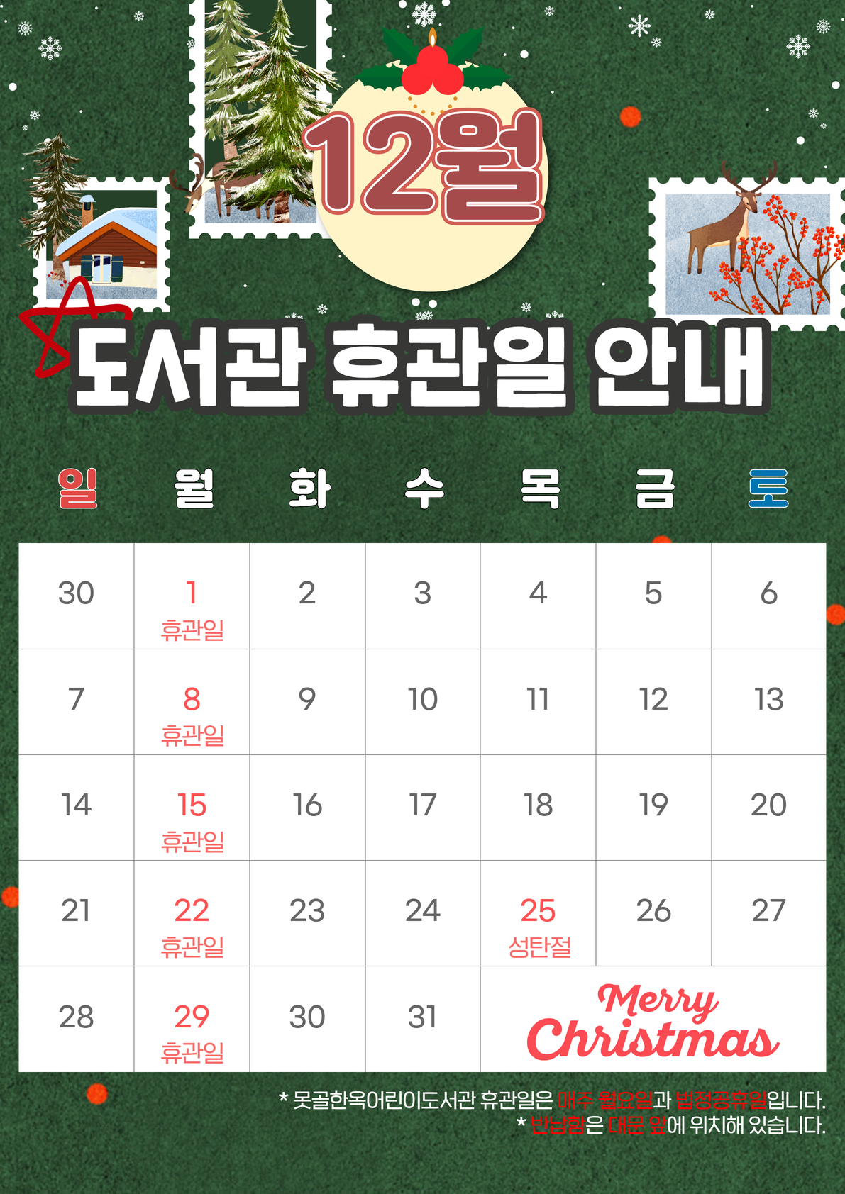 못골한옥어린이도서관 2025년 12월 휴관일 안내