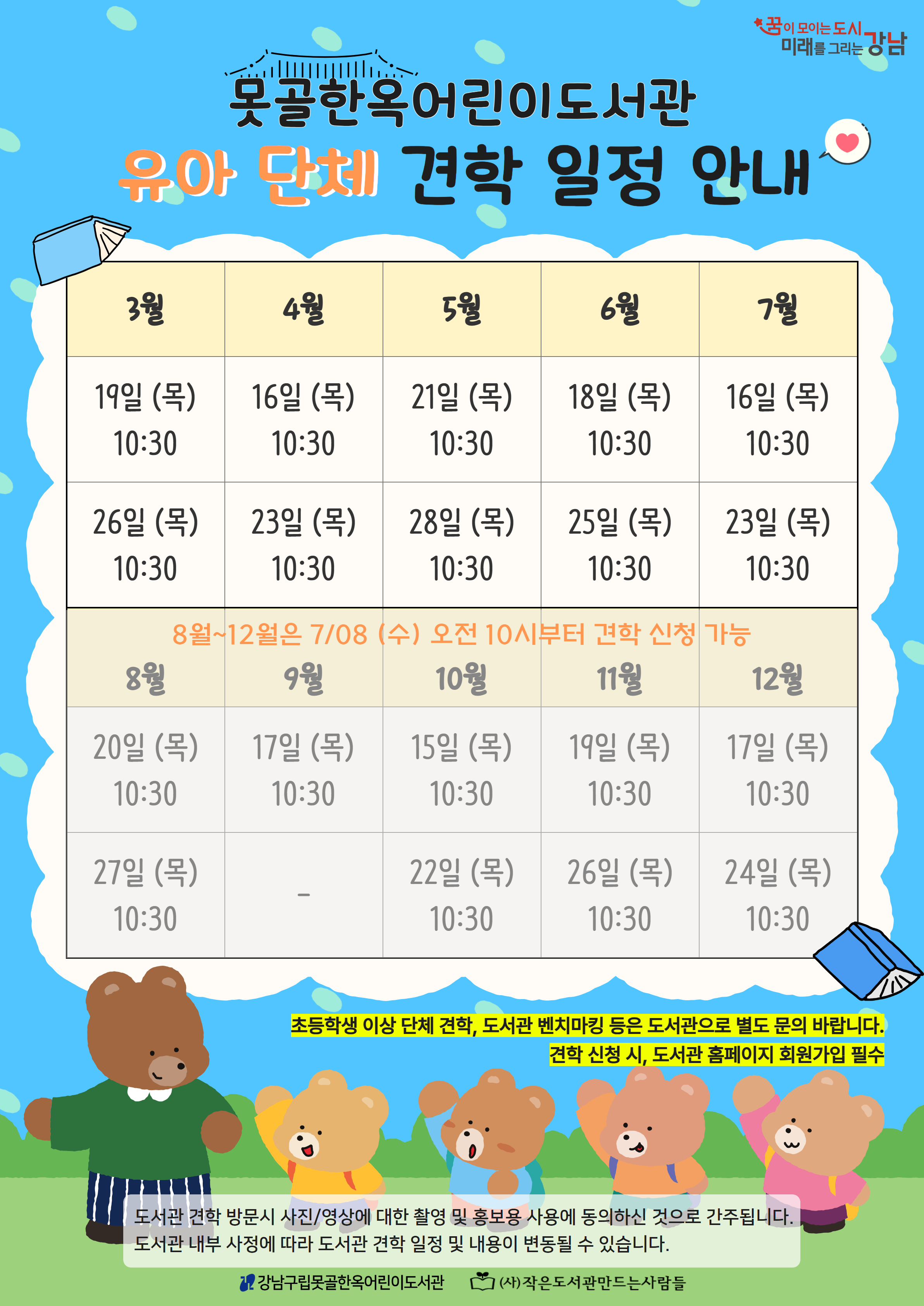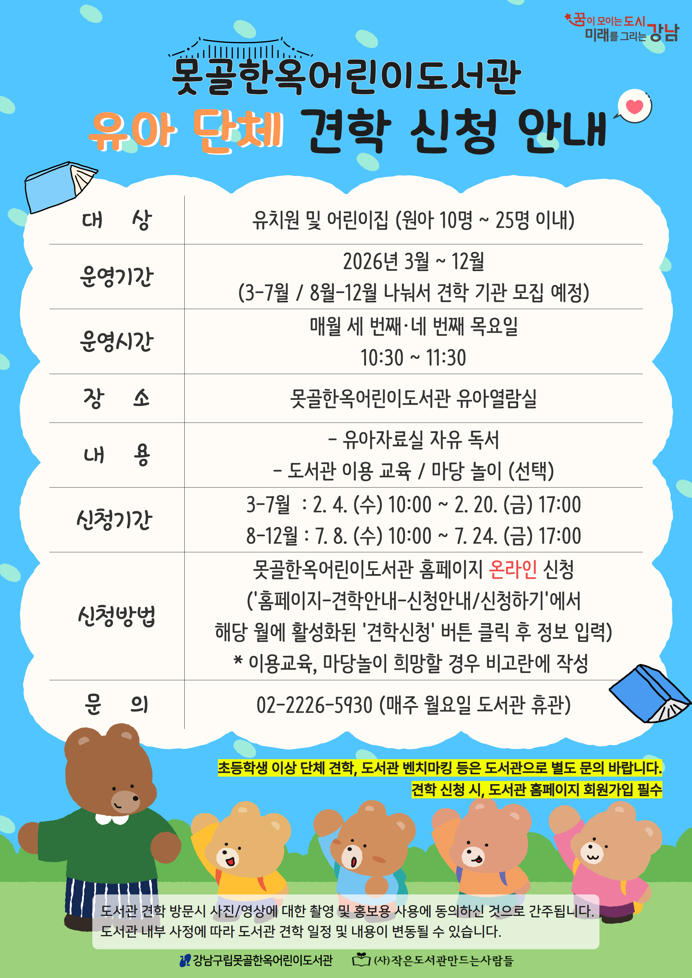 못골한옥어린이도서관 유아 단체 견학 신청 안내