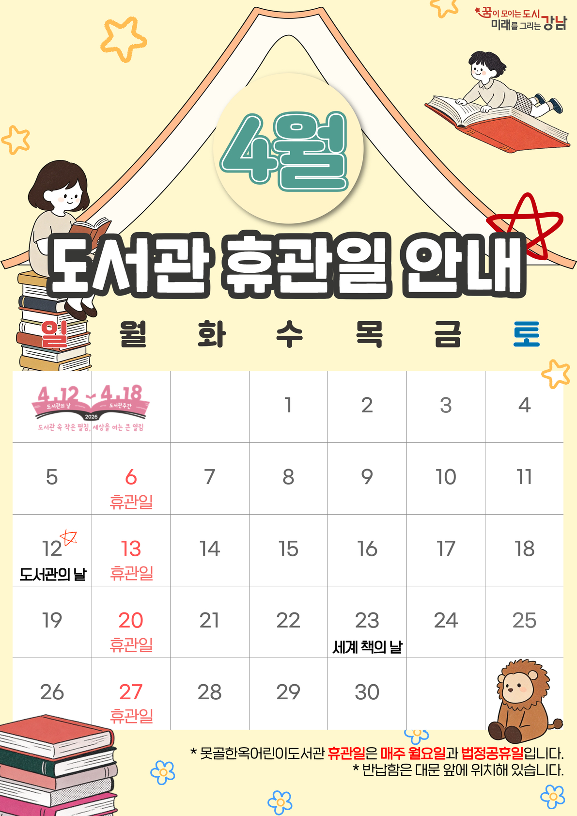 못골한옥어린이도서관 2026년 4월 휴관일 안내