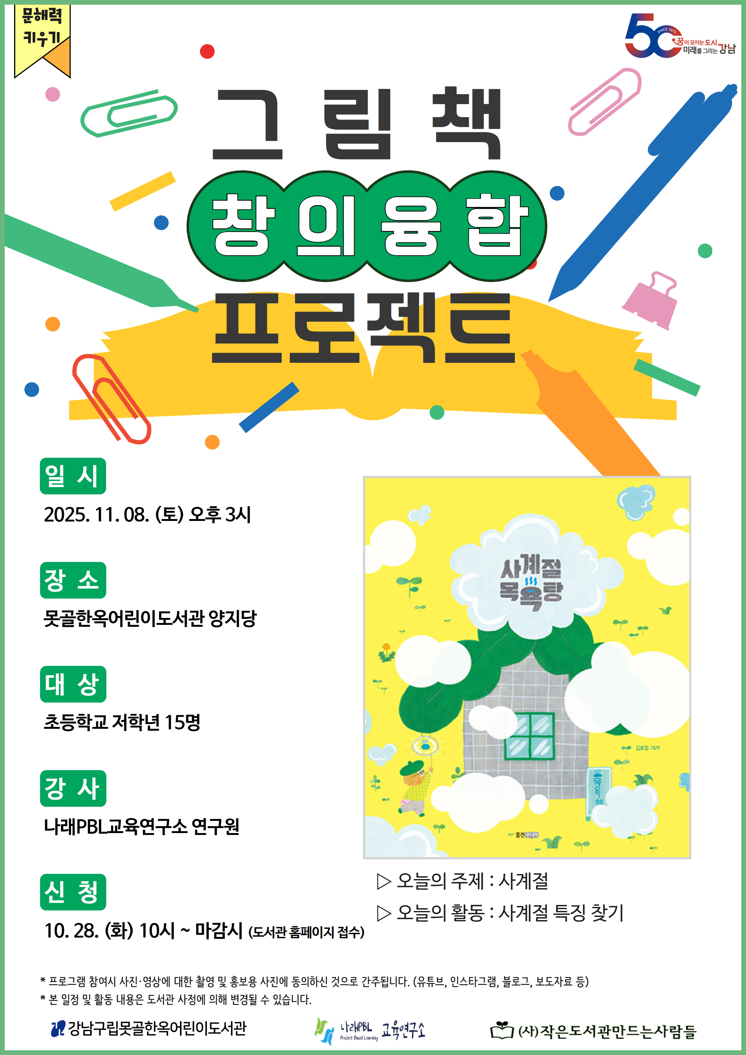 | 행사명 | 못골한옥 [문해력 키우기] 그림책 창의융합 프로젝트 (11월) |