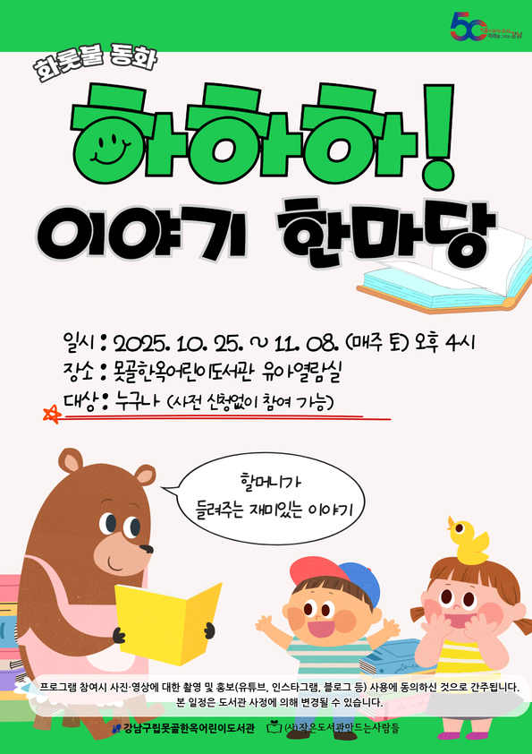 사전 신청없이 참여 가능 (도서관 사정에 의해 일정이 변경될 수 있습니다)