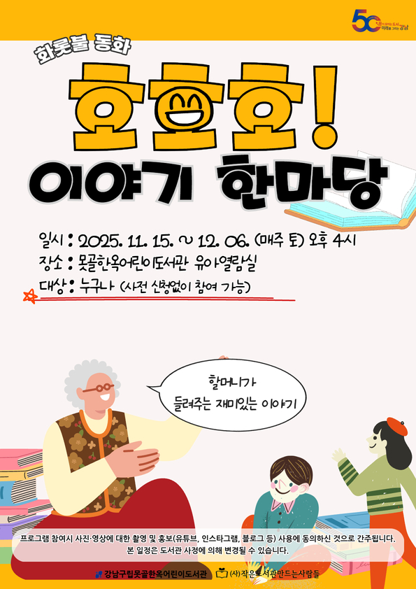 사전 신청없이 참여 가능 (도서관 사정에 의해 일정이 변경될 수 있습니다.)