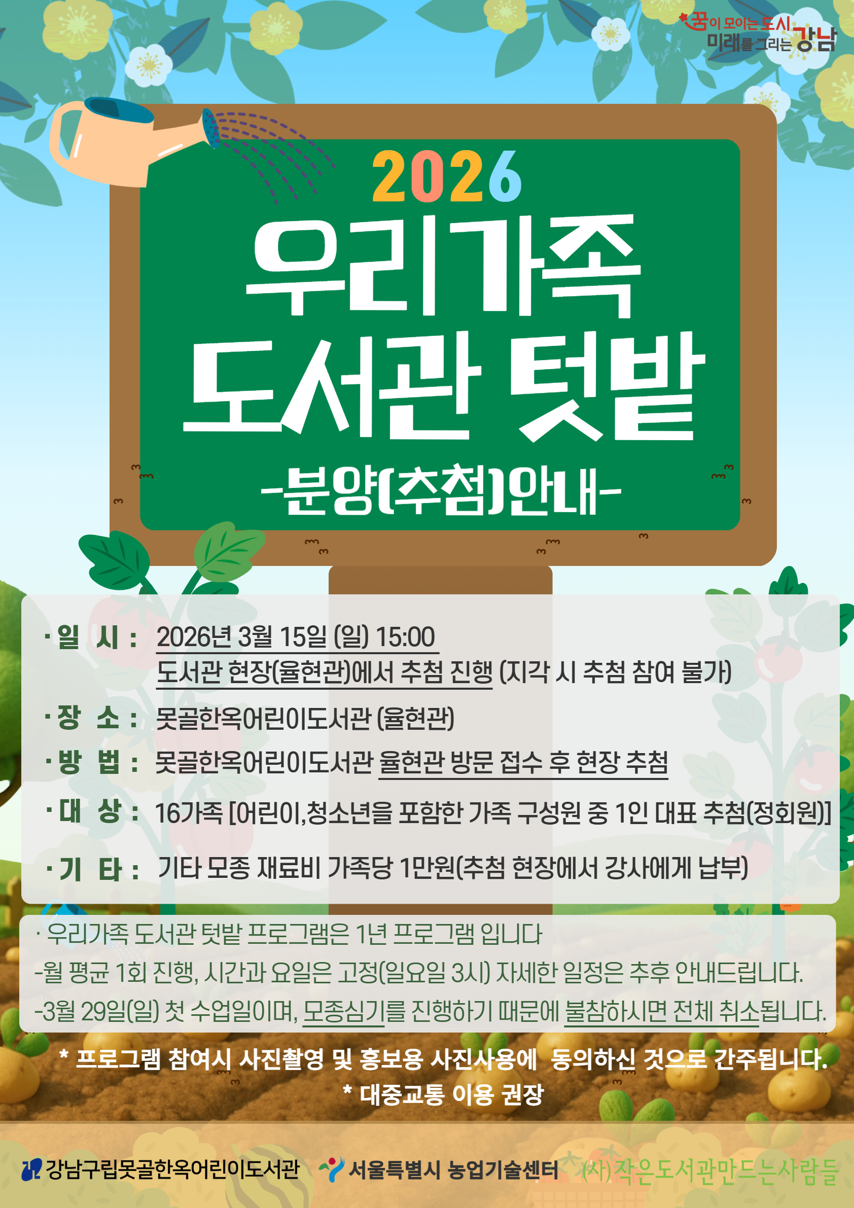 | 행사명 | 못골한옥 2026 우리가족 도서관 텃밭(모집안내) |