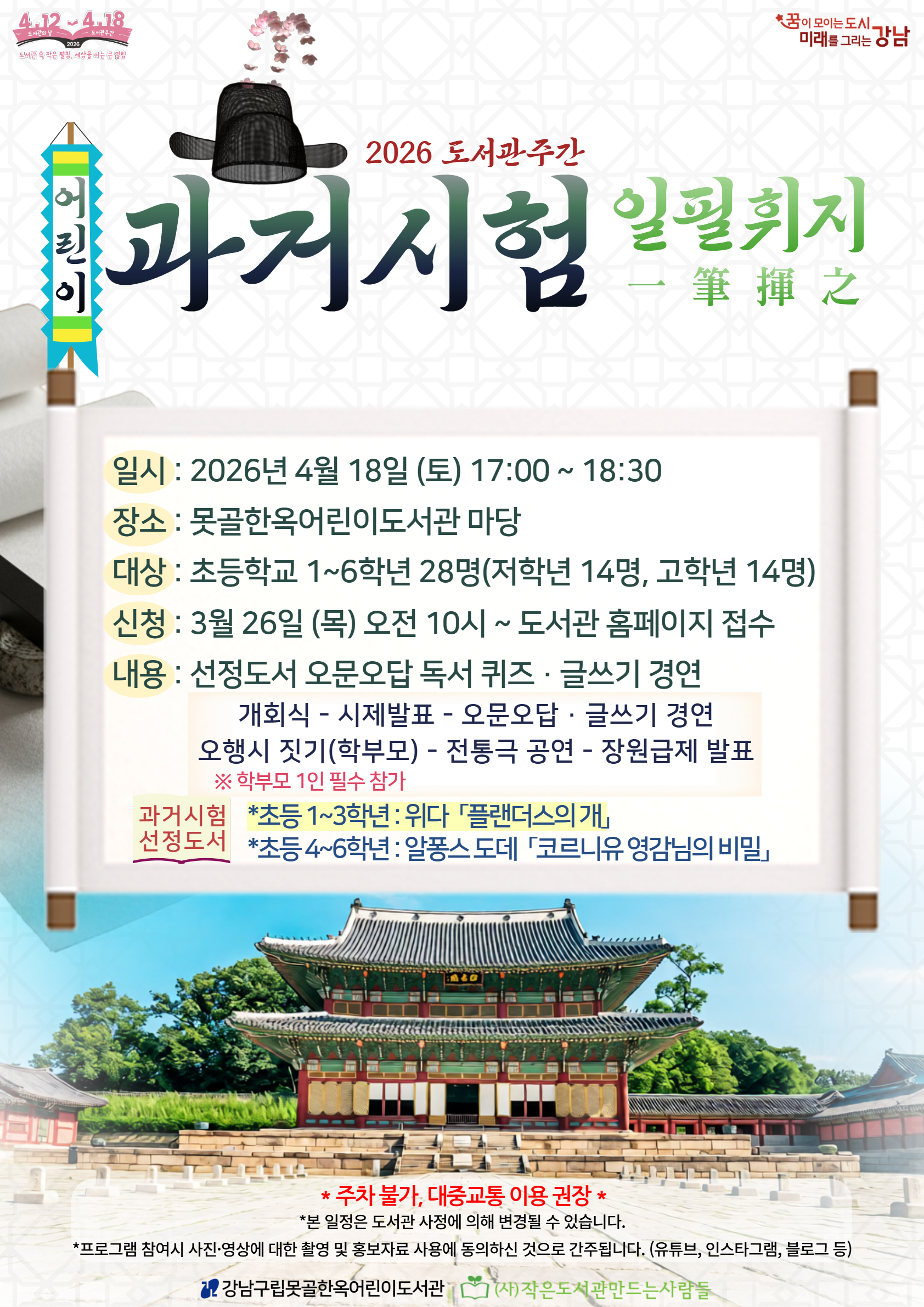 | 행사명 | 못골한옥 [도서관주간] 2026 어린이 과거시험 일필휘지-초등 1~3학년 |