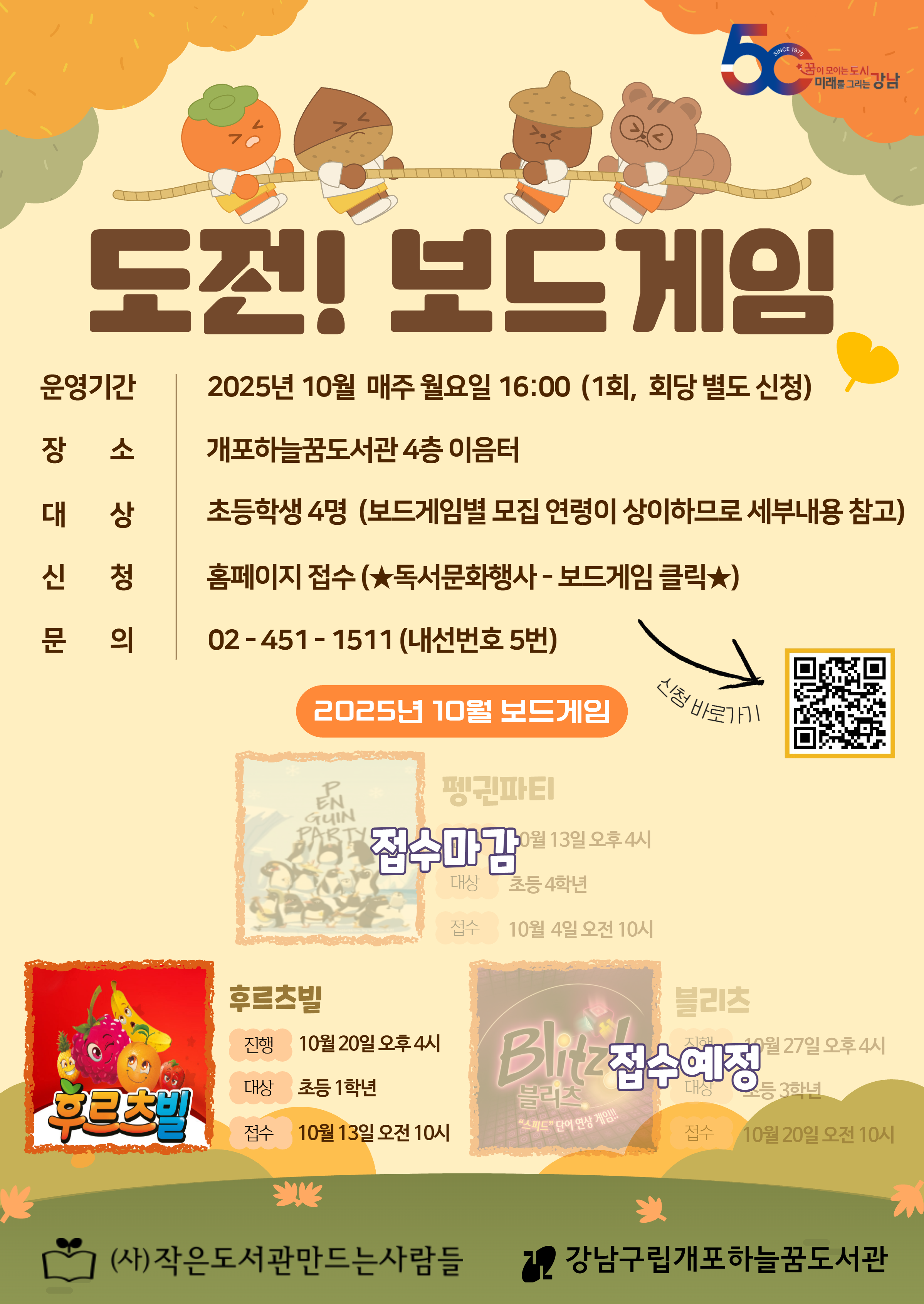 행사명 | 개포하늘꿈 [이음] 도전! 보드게임 (10월 20일, 후르츠빌) |