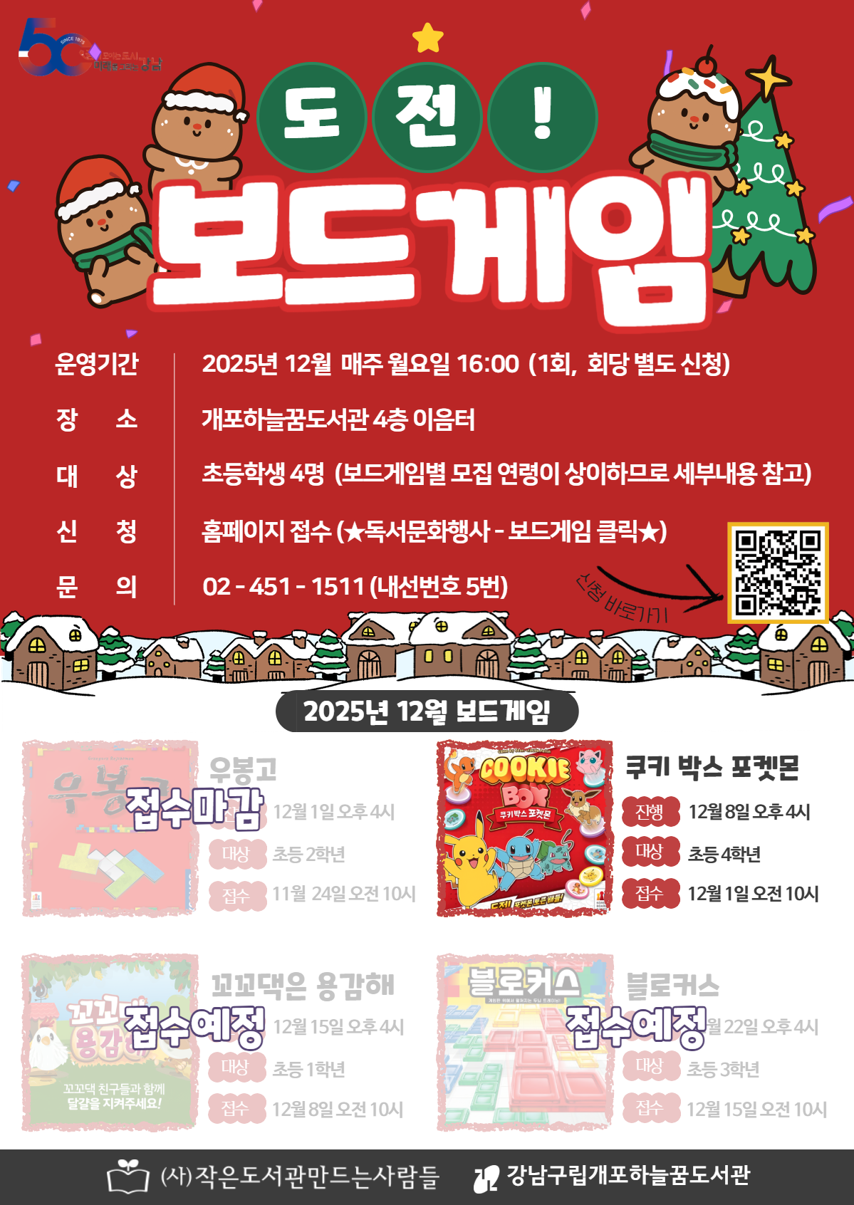 | 행사명 | 개포하늘꿈 [이음] 도전! 보드게임 (12월 8일, 쿠키 박스 포켓몬) |