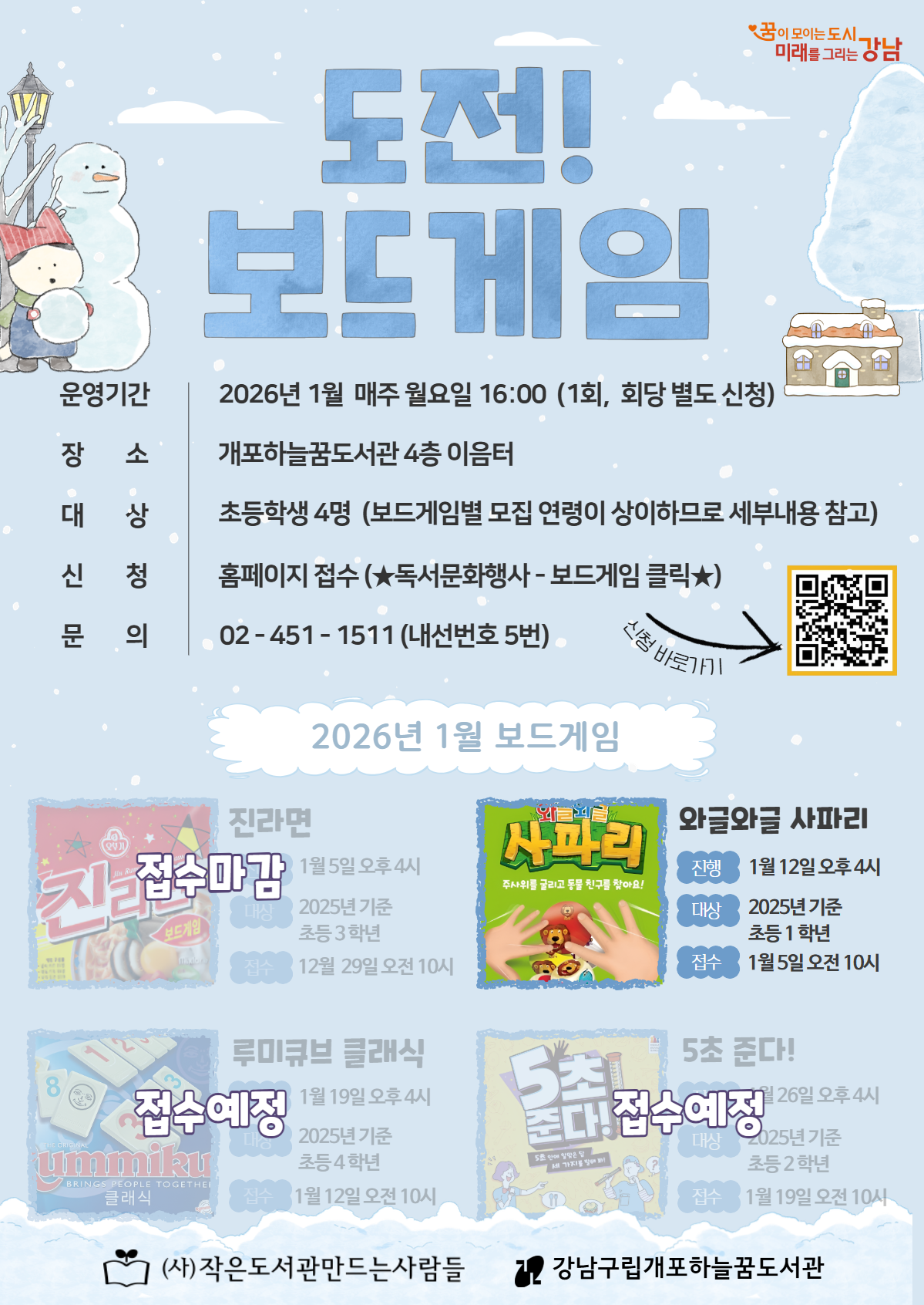 | 행사명 | 개포하늘꿈 [이음] 도전! 보드게임 (1월 12일, 와글와글 사파리) |