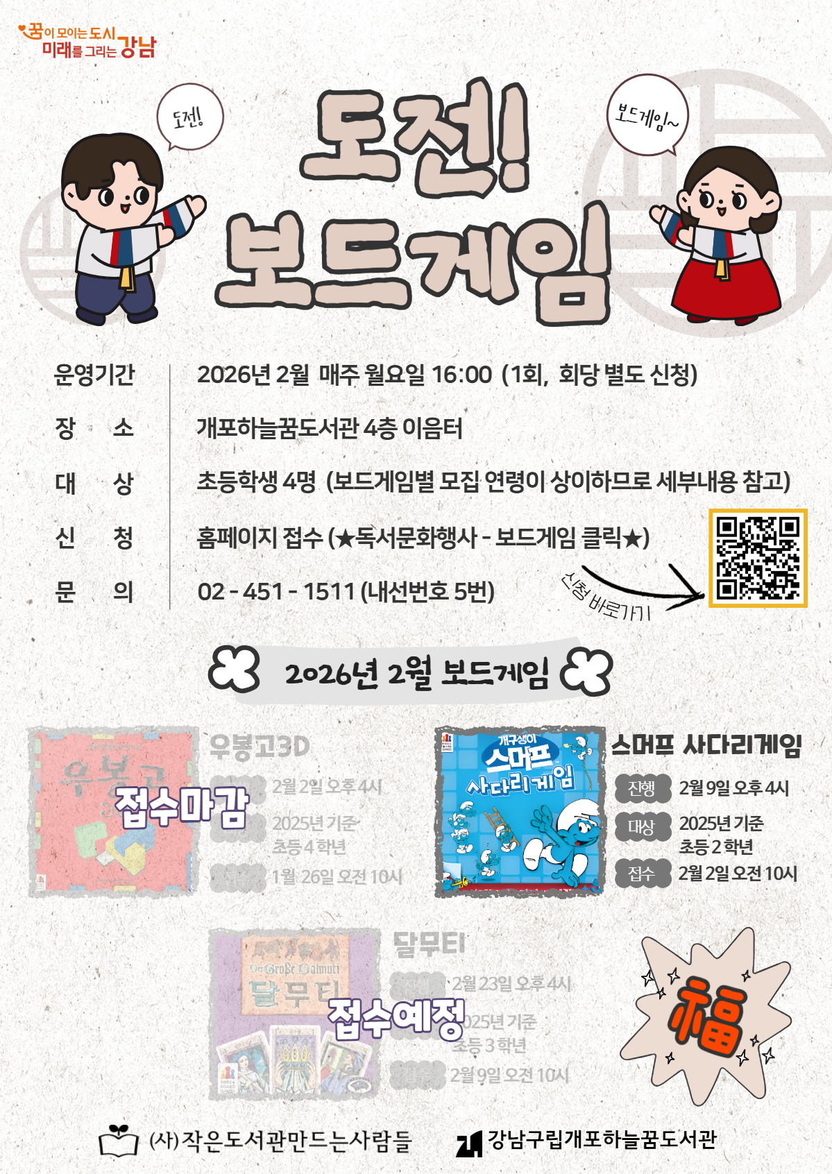 | 행사명 | 개포하늘꿈 [이음] 도전! 보드게임 (2월 9일, 스머프 사다리게임) |