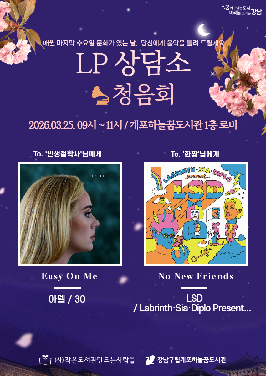 | 행사명 | 개포하늘꿈 [문화의 날] 3월 LP 상담소(청음회) |