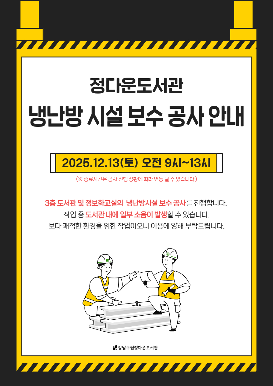 [정다운] 12/13(토) 정다운도서관 냉난방 시설 보수 공사 안내