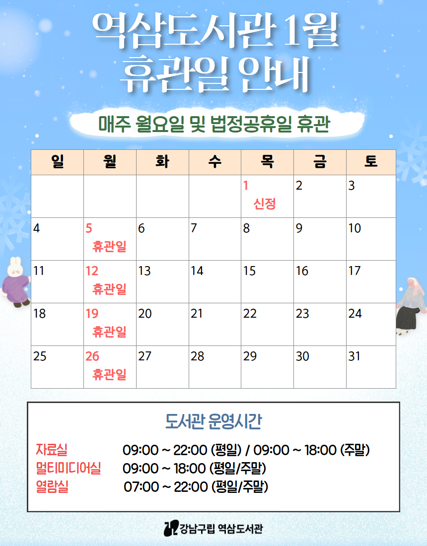 [세곡도서관] 1월1일(목요일) 신정 휴관 안내