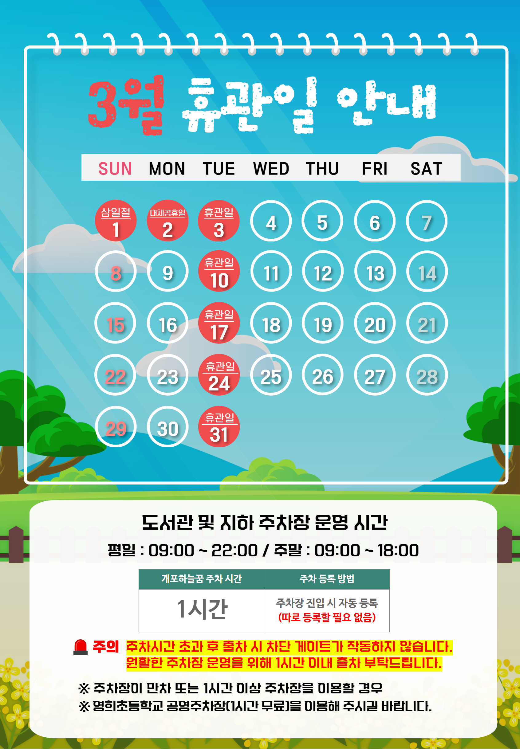 3월 휴관일 안내
