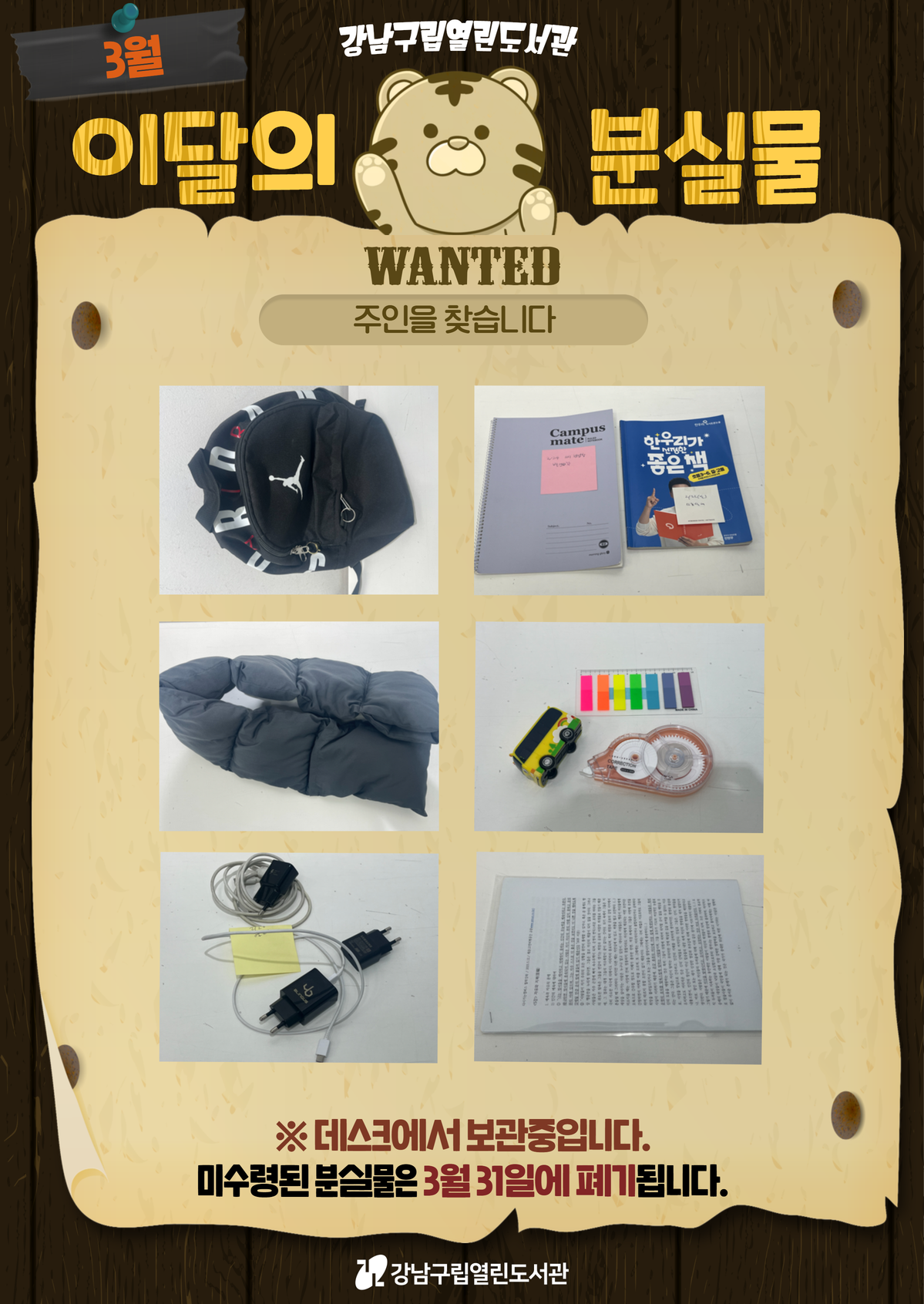 <열린도서관 3월 분실물 안내>