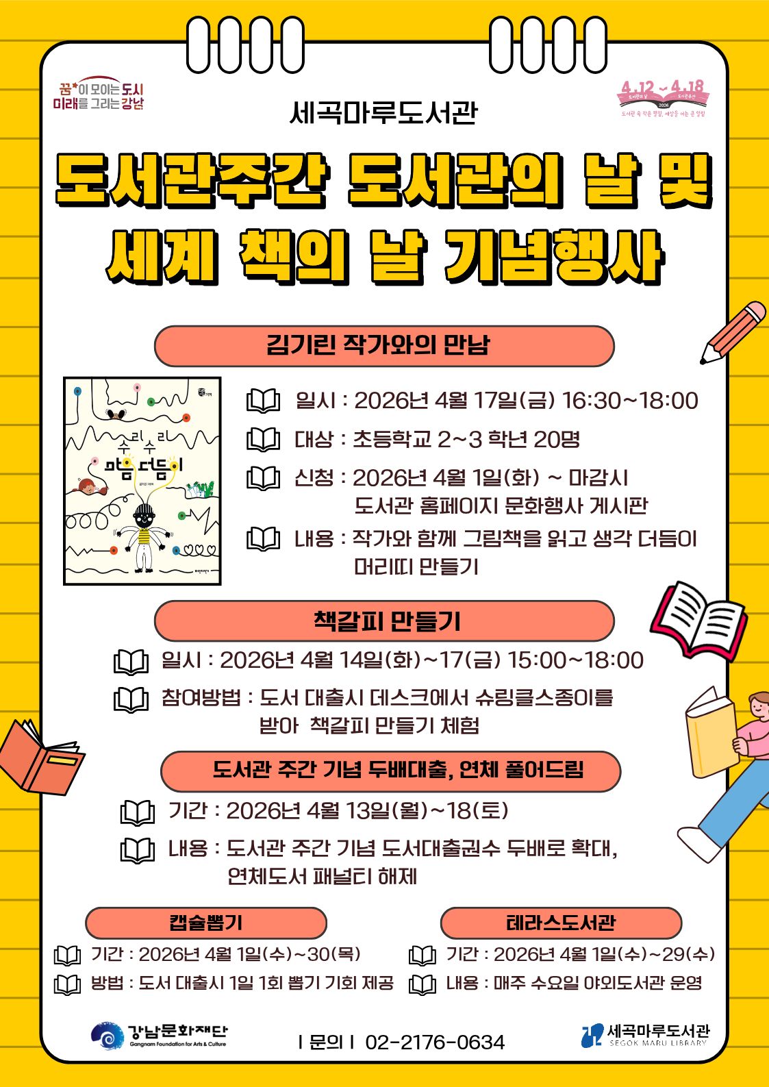 2026년 세곡마루도서관 도서관 주간 도서관의 날 및 세계 책의 날 기념 행사 안내