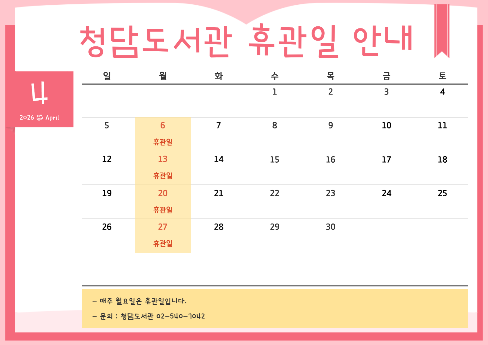 못골한옥어린이도서관과 함께하는 2026년 도서관주간 프로그램 안내