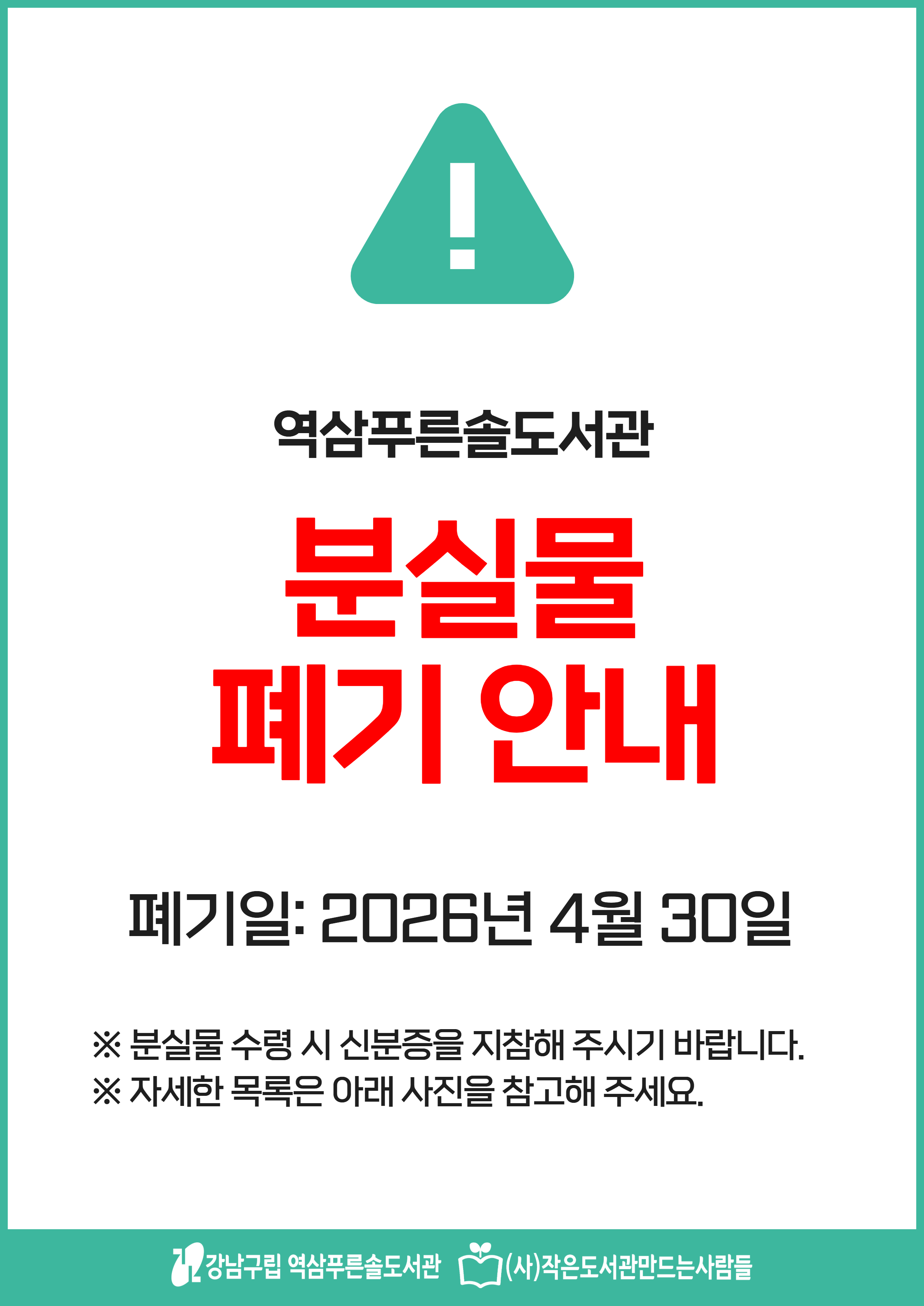 [역삼푸른솔도서관] 분실물 폐기 안내