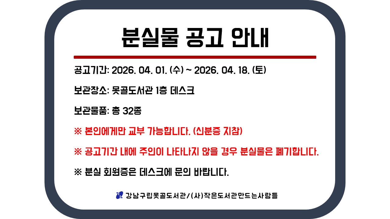 [청담도서관] 4-6월 주말 자원봉사자 모집