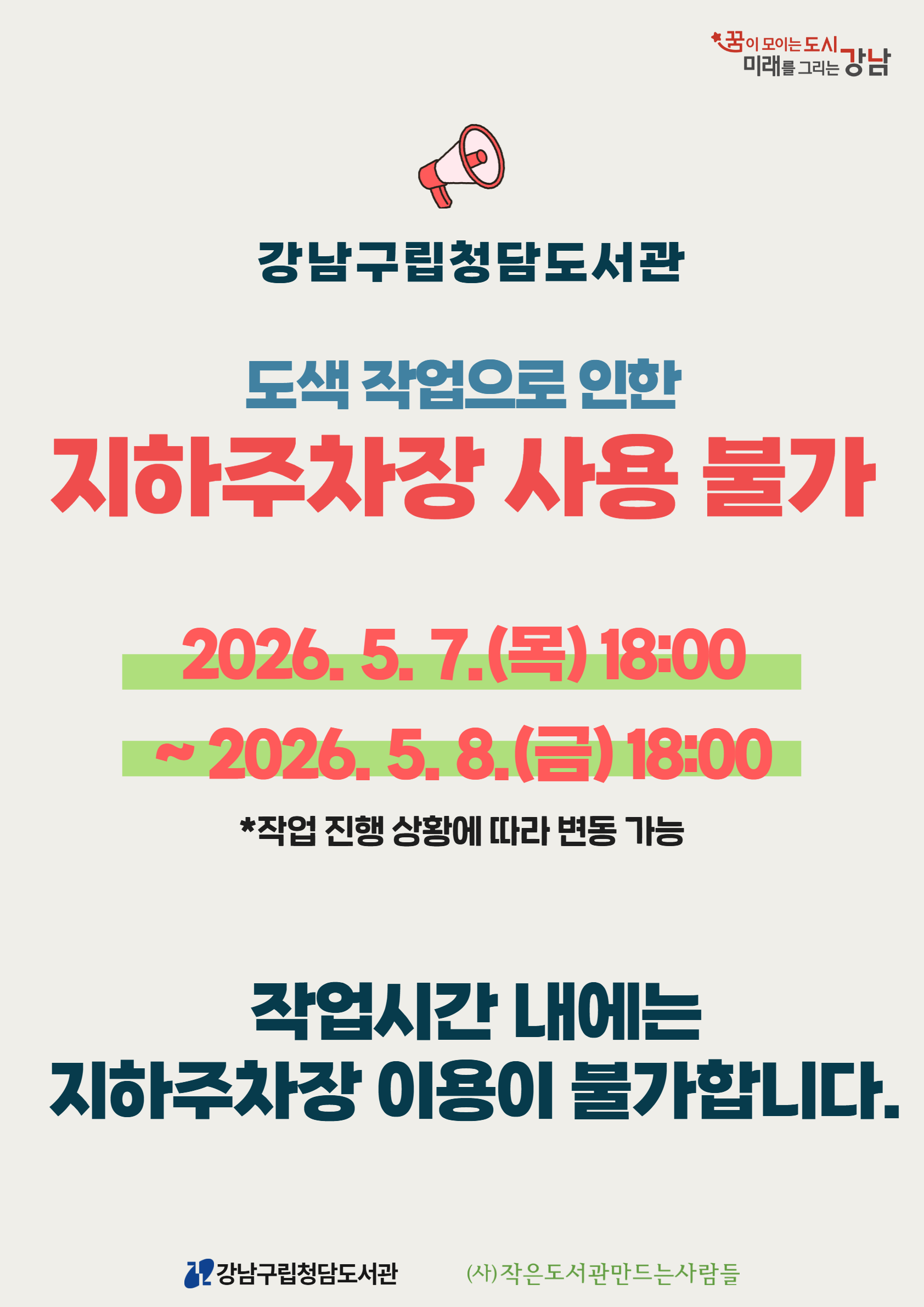 [청담도서관] 지하주차장 사용 불가 안내