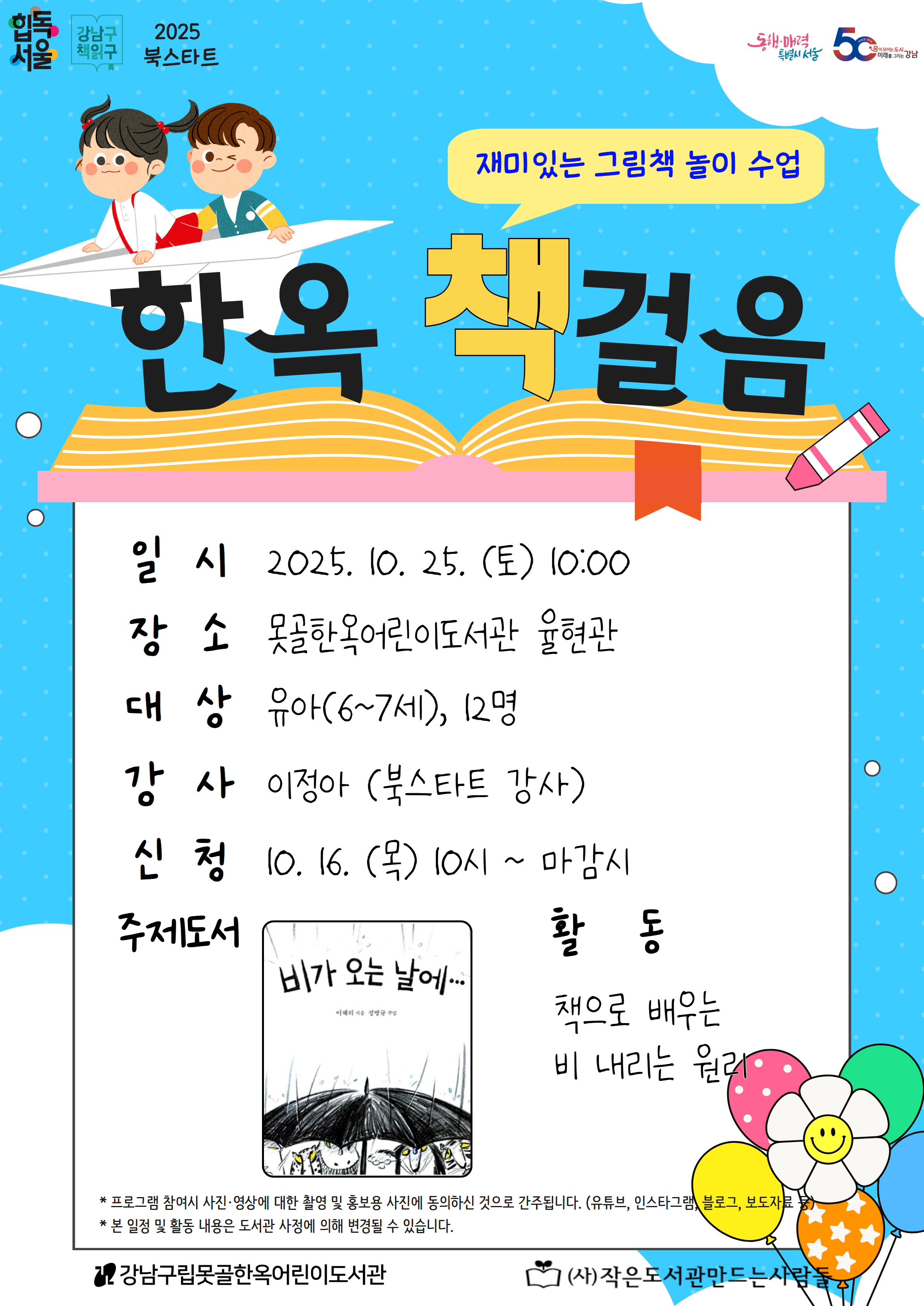 [2025 북스타트] 한옥 책걸음-재미있는 그림책 놀이 수업(유아 6~7세)