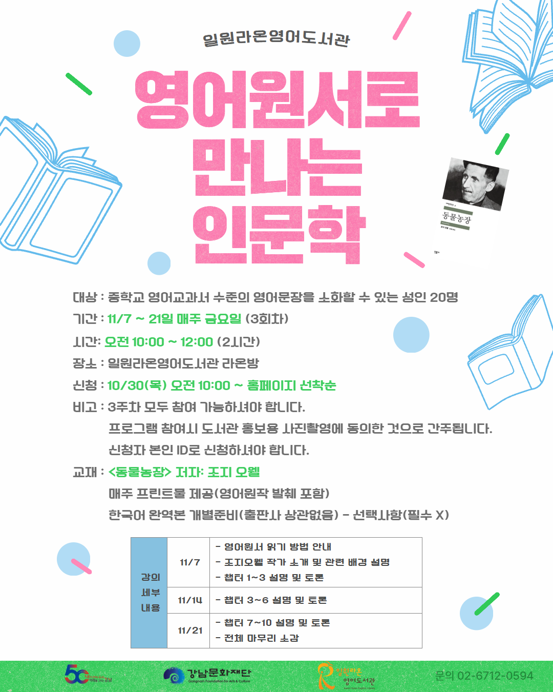 | 행사명 | 일원라온영어 영어원서로 만나는 인문학 |