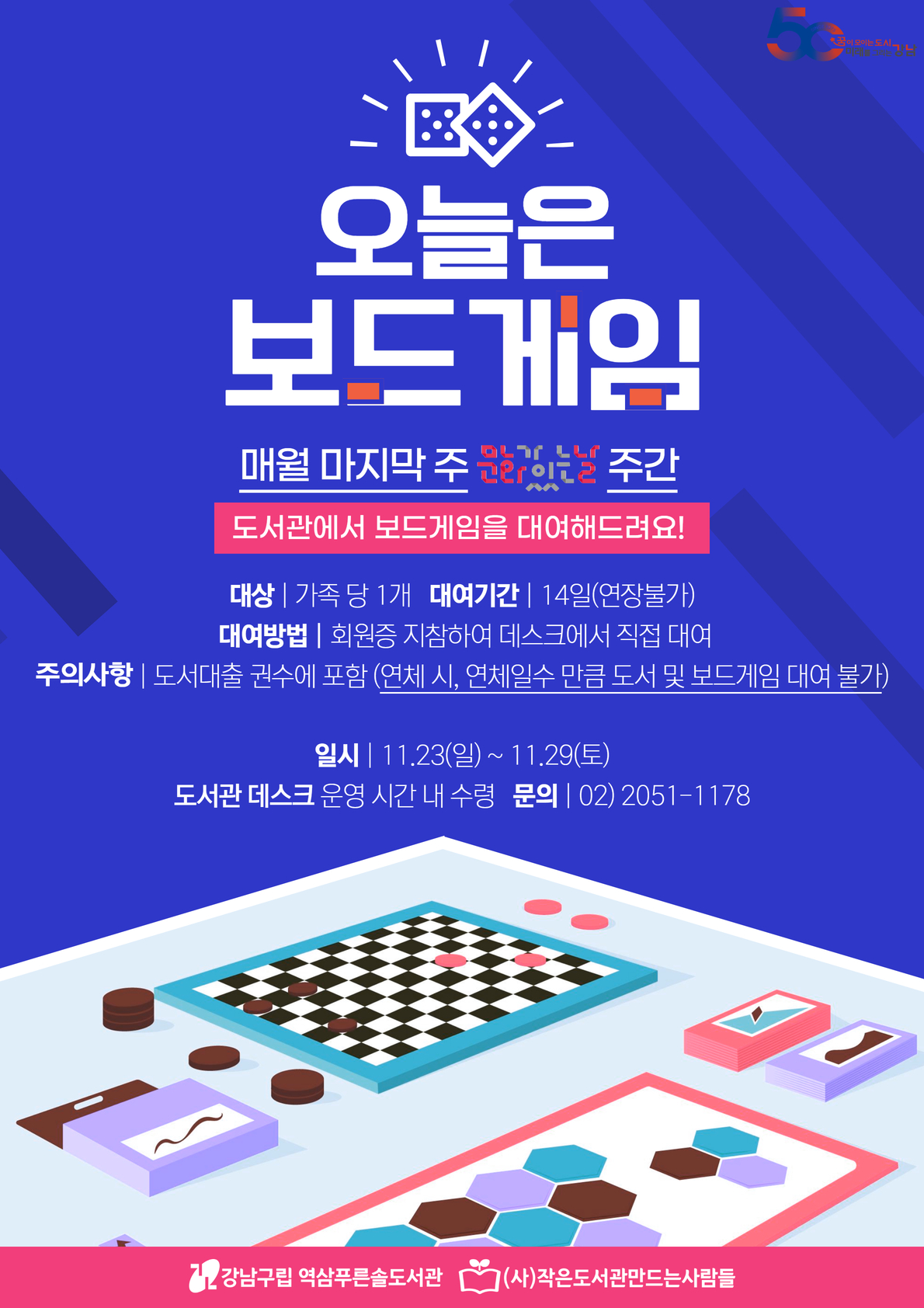 | 행사명 | 역삼푸른솔 [11월 문화가 있는 날] 오늘은 보드게임 (기간 내 현장접수만 가능) |
