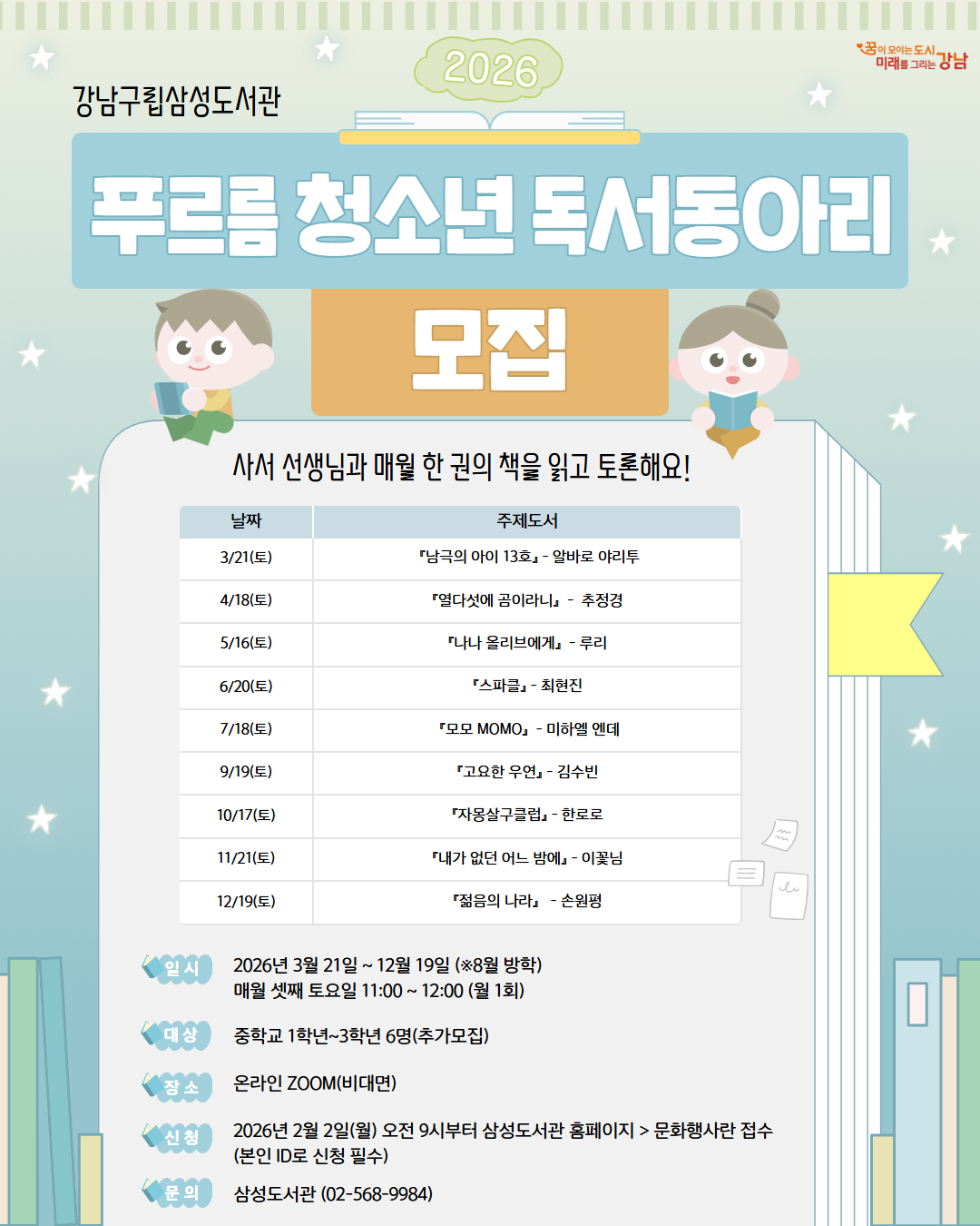 [2026년 삼성도서관 독서동아리] 푸르름 청소년 독서동아리