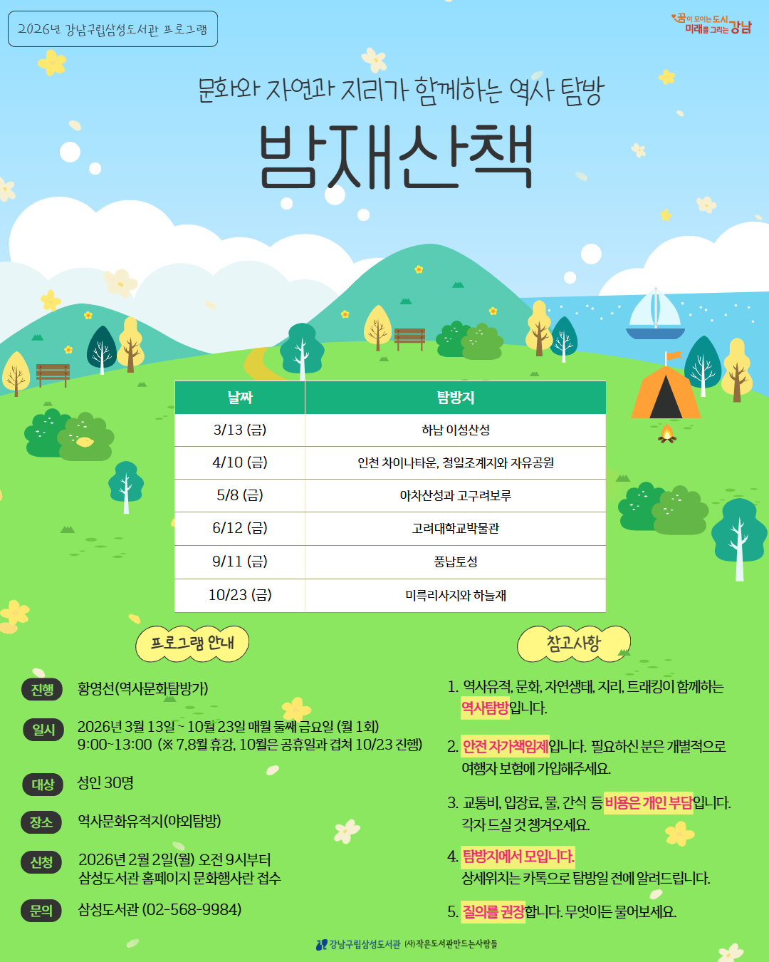 [2026년 삼성도서관 프로그램] 문화와 자연과 지리가 함께하는 역사 탐방, 밤재산책