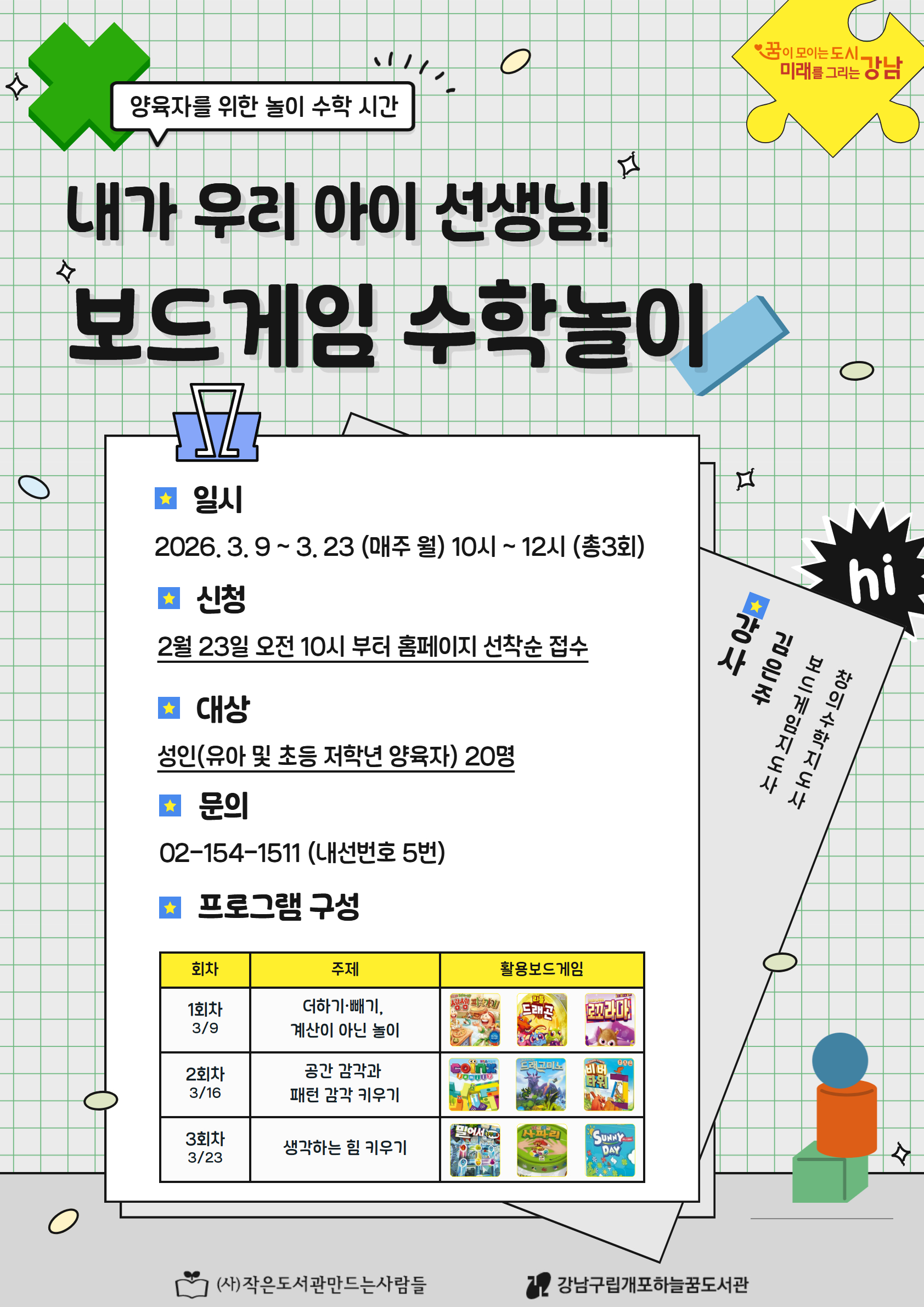 | 강사명 | 김은주 (창의수학, 보드게임 지도사) |