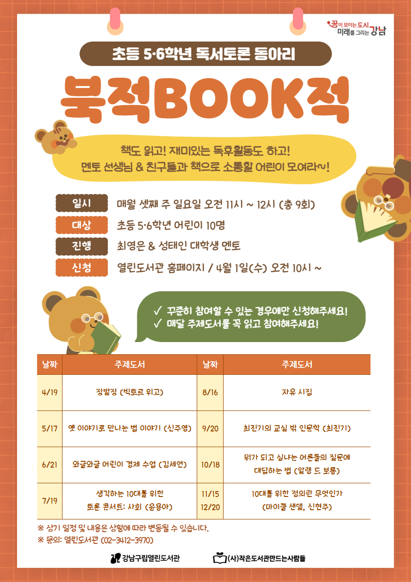 | 행사명 | 열린 [동아리] 초등 5·6학년 독서토론 동아리 <북적BOOK적> |