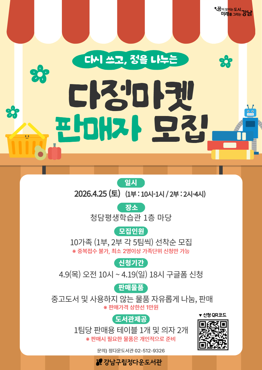 | 행사명 | 정다운 [대면] 2026 상반기 (다시 쓰고, 정을 나누는) 정다운 다정마켓 판매자 모집 |