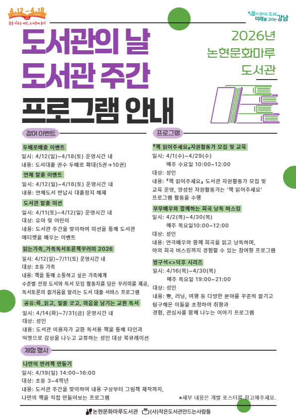 [도서관의 날 및 도서관 주간] 2026년 도서관의 날&도서관 주간 프로그램 안내