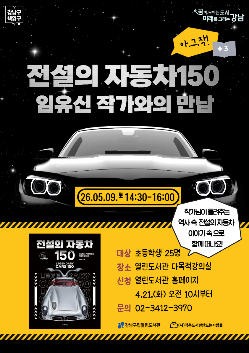 | 행사명 | 열린 [어린이날] 아.그.작! ✦3.「전설의 자동차 150」 임유신 작가와의 만남 |