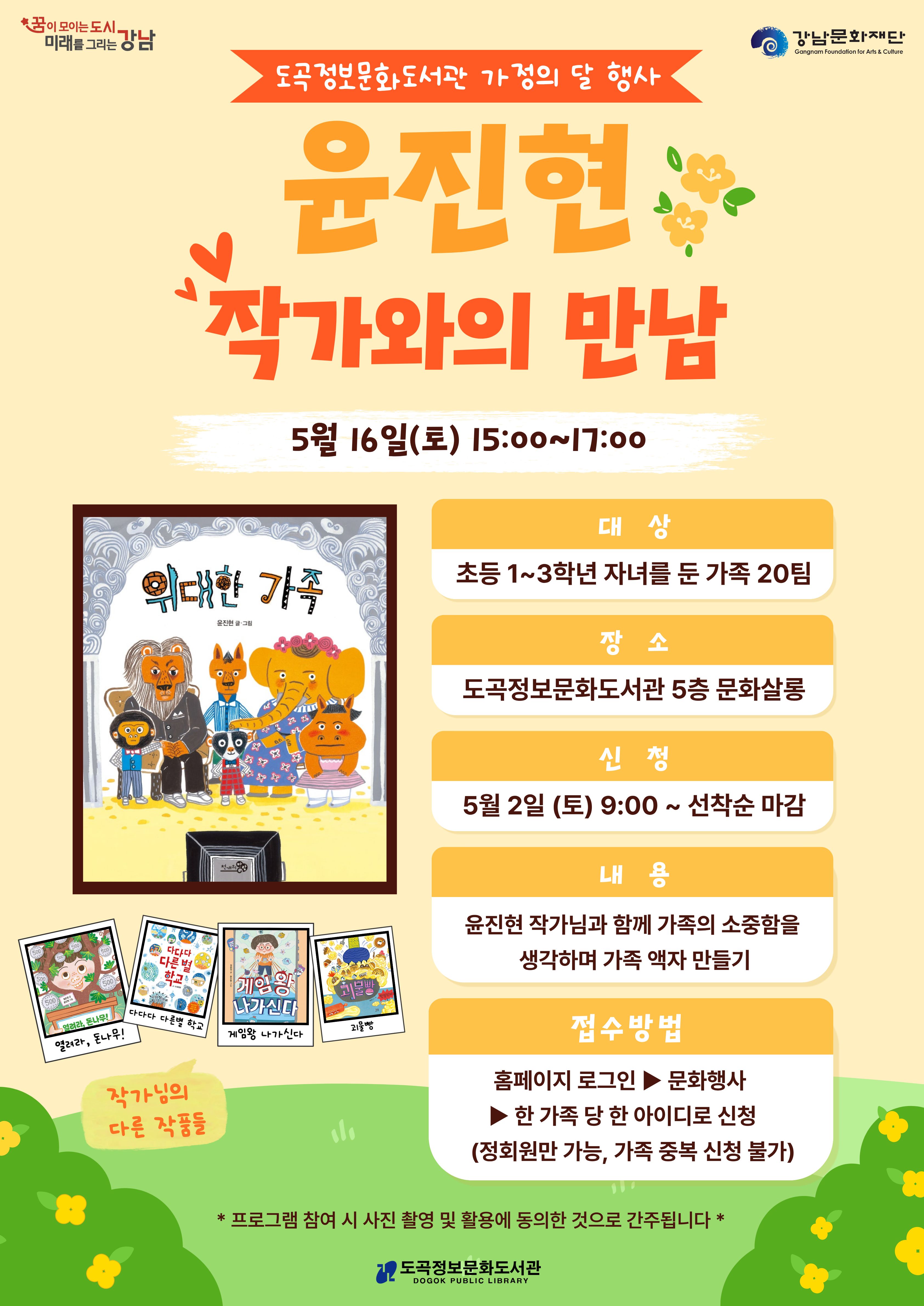| 행사명 | 도곡정보 [가정의 달 행사] 윤진현 작가와의 만남 |