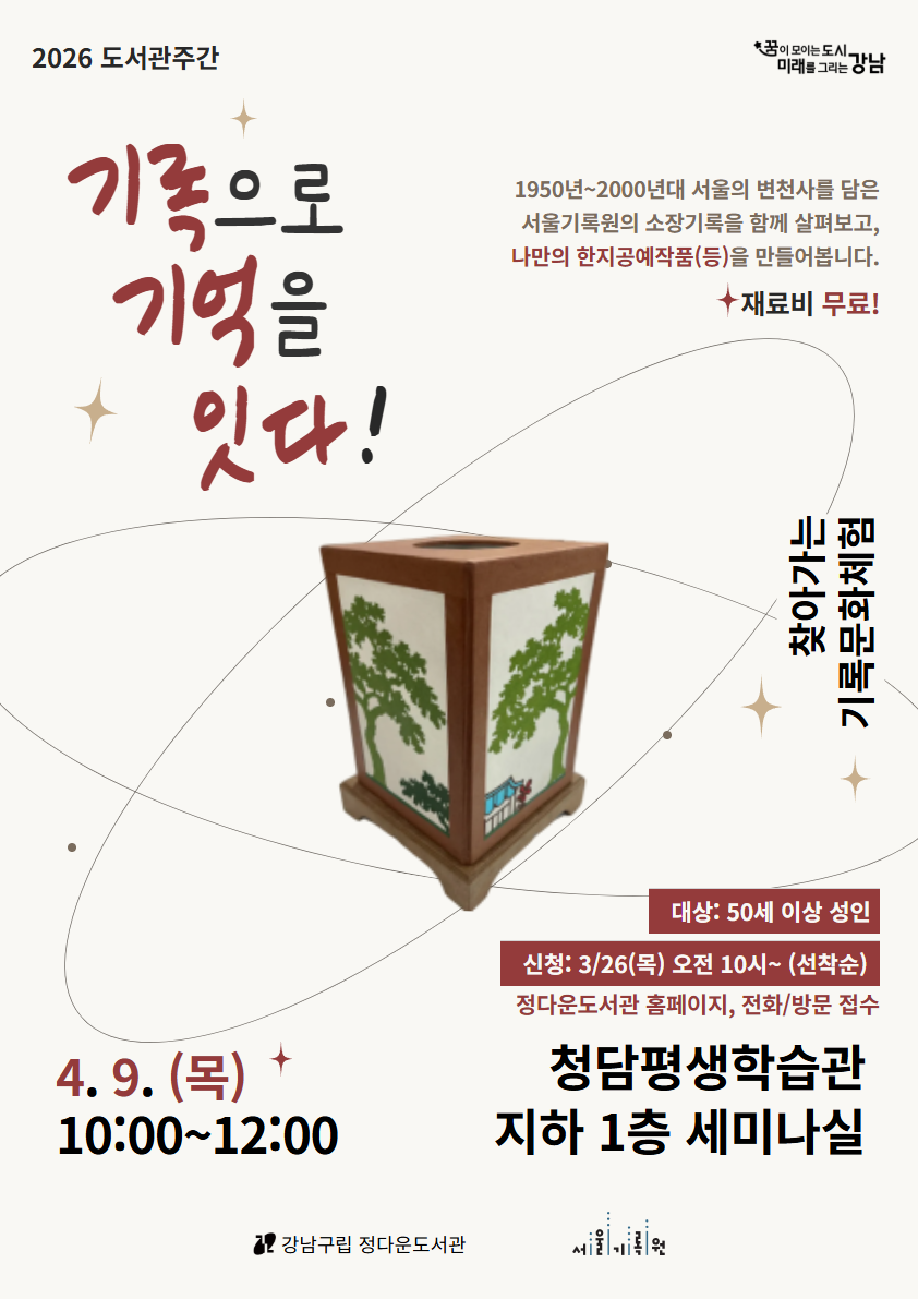 [도서관주간] 서울기록원의 찾아가는 기록문화체험 2026 <기록으로 기억을 잇다!>