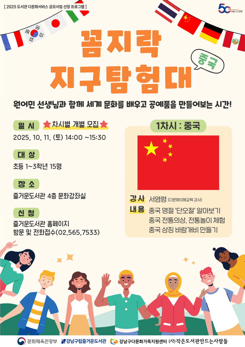 | 행사명 | 즐거운 [2025 다문화서비스 공모사업][기관연계-강남구다문화가족지원센터] 꼼지락 지구탐험대 '1차시-중국' |