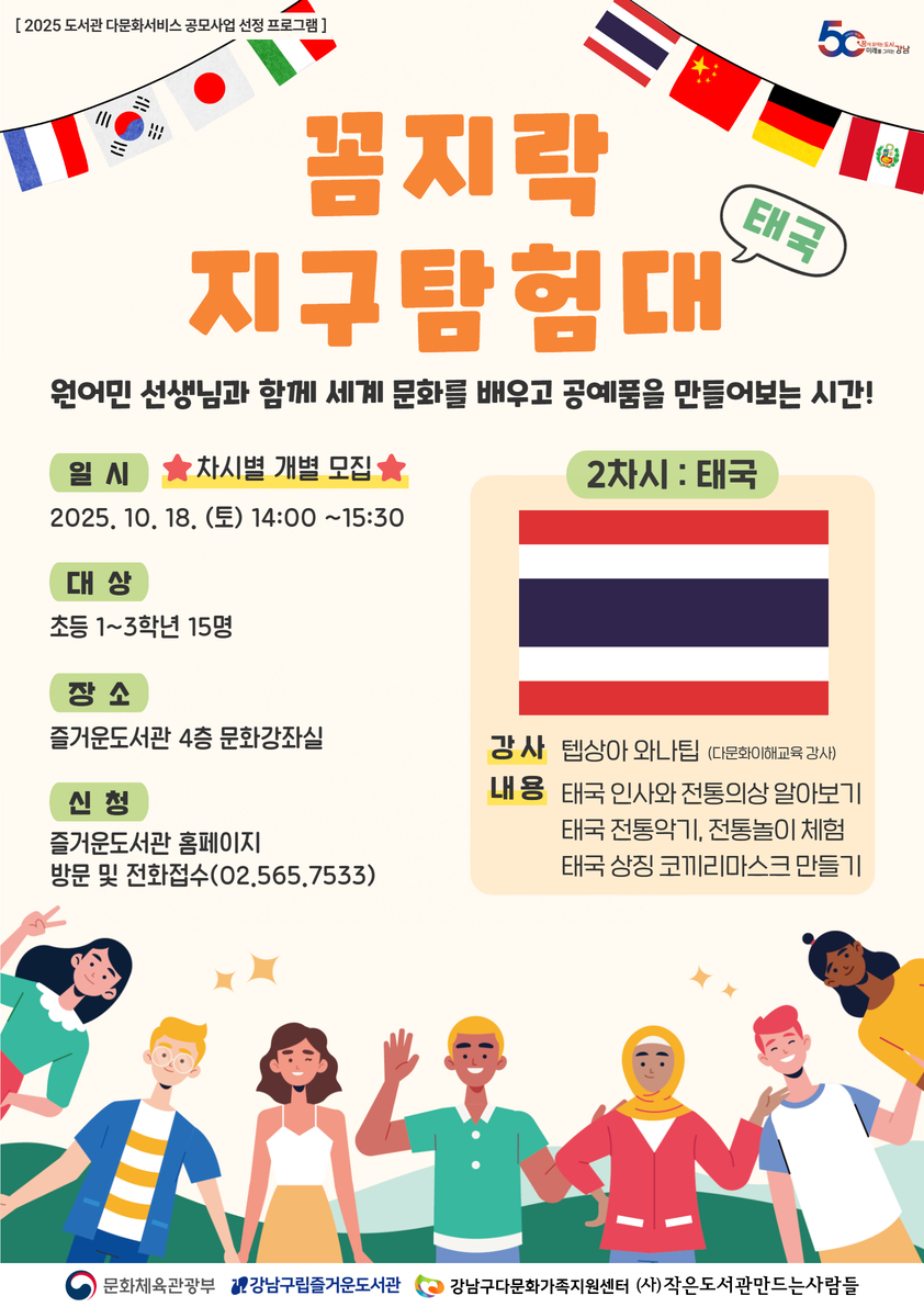 | 행사명 | 즐거운 [2025 다문화서비스 공모사업][기관연계-강남구다문화가족지원센터] 꼼지락 지구탐험대 '2차시-태국' |