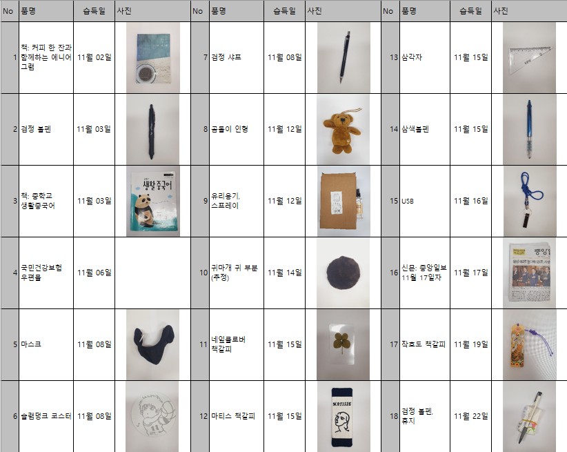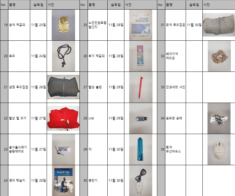 2025년 11월 분실물 공고