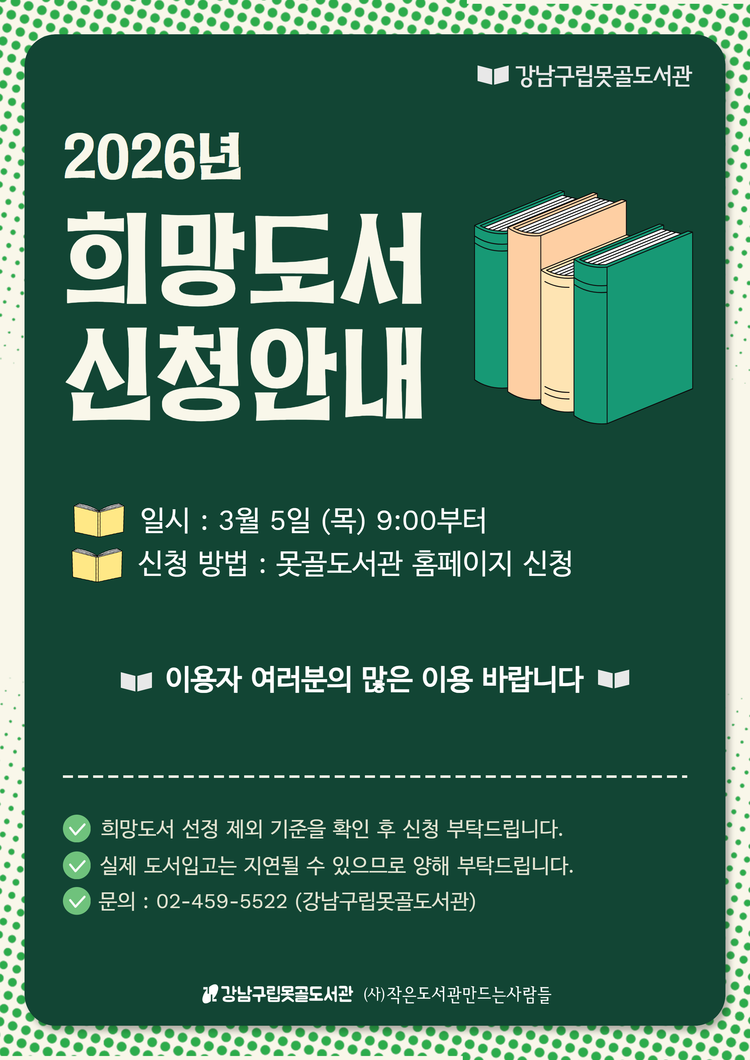 [못골도서관 2026년 희망도서 신청 안내]
