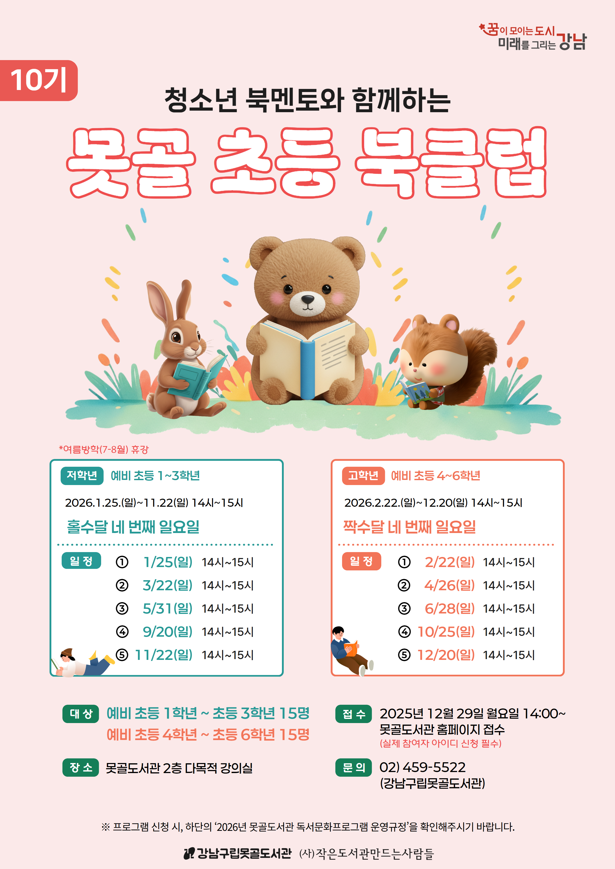 예비 초등 1~3학년 <청소년 북멘토와 함께하는 못골초등북클럽 10기> 신청 페이지입니다.![]()